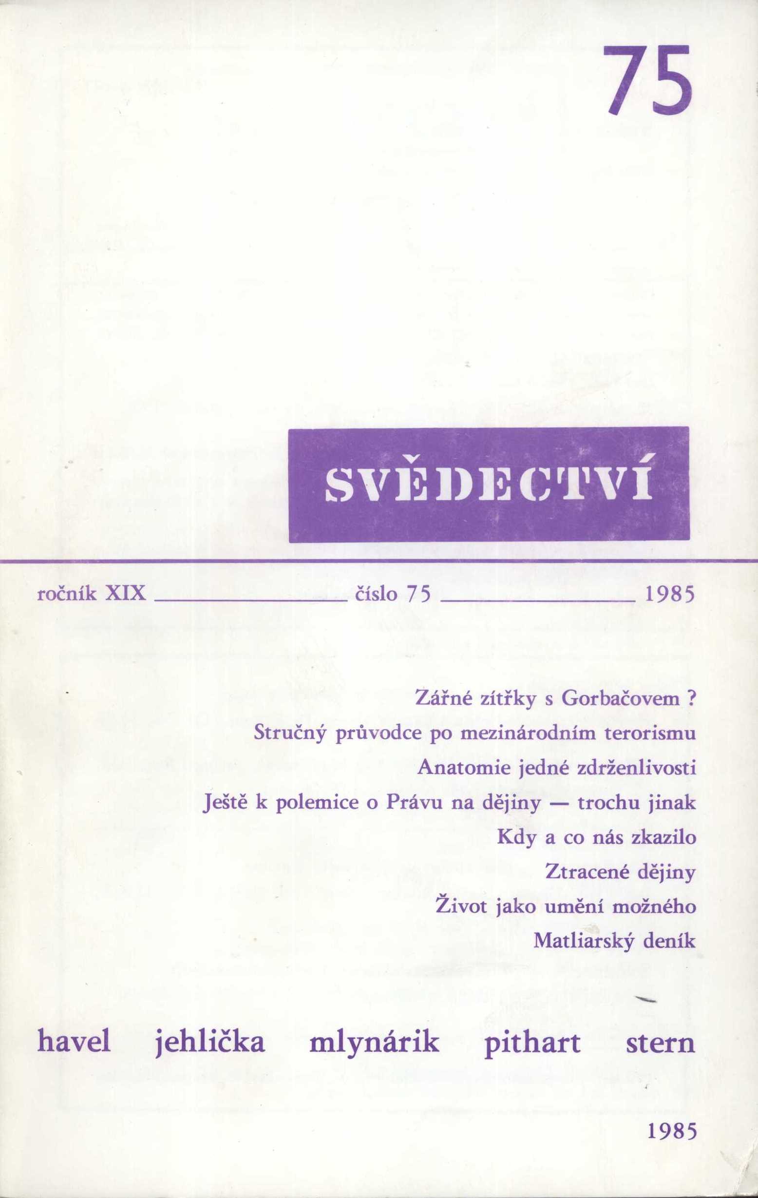 Keywords politika * kultura * literatura * exil * třetí odboj * r. 1985 * exilový časopis