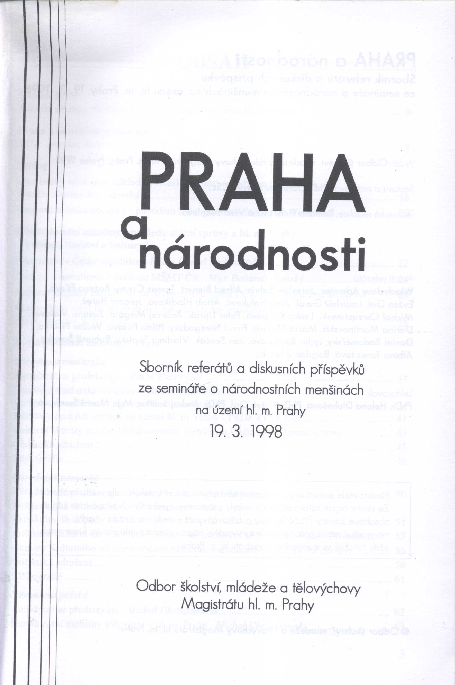 Názvové údaje Praha a národnosti : sborník referátů a diskusních příspěvků ze semináře o národnostních menšinách na území hl. m. Prahy / sestavil a redigoval Jaroslav Balvín Další autoři Balvín, Jaroslav, 1947- (Sestavovatel, kompilátor) (Redaktor, výkonný redaktor) Nakladatel Praha : Magistrát hl. m. Prahy, 1998 Výrobce Jihlava : Ekon Rozsah 147 stran ; 23 cm ISBN brožováno Země vyd. Česko Jazyk dok. čeština * slovenština Poznámky Obálka. - Úvod. - Literatura a prameny. - Kontakty na sdružení národnostních menšin. - Částečně slovenský text. - Poznámky