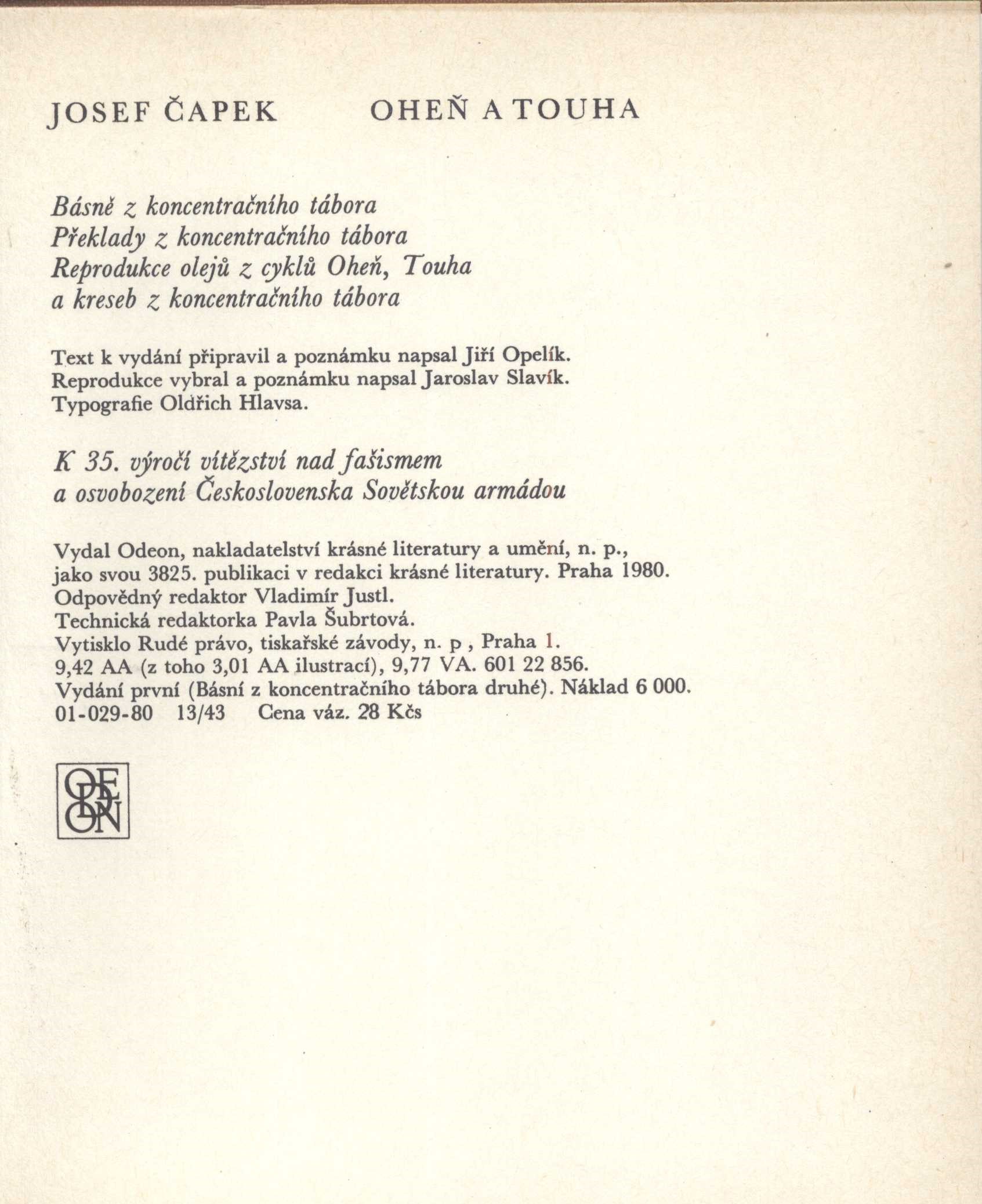 Keywords česká literatura * české výtvarné umění * překlady * Čapek J. * koncentrační tábory * obrazové přílohy * reprodukce obrazů * r. 1980