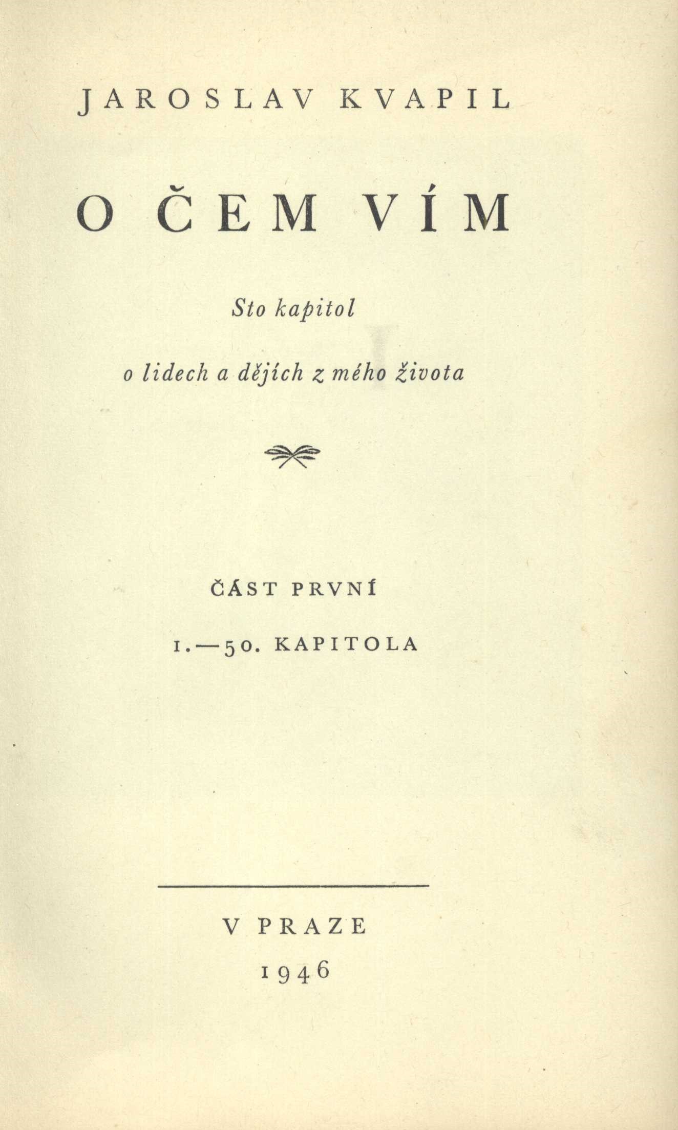 Title information O čem vím : sto kapitol o lidech a dějích z mého života. Část první. 1.-50. kapitola / Jaroslav Kvapil Personal name Kvapil, Jaroslav, 1868-1950 (Author) Další autoři Stretti, Viktor, 1878-1957 (Illustrator) Kaláb, Method, 1885-1963 (Book designer) Corporation Dr. Václav Tomsa (nakladatelství) (Publisher) Průmyslová tiskárna v Praze (Printer) (Printer of plates) Publication V Praze : Dr. Václav Tomsa, 1946 Manufacture V Praze : Průmyslová tiskárna Scope 317 stran, 1 nečíslovaný list obrazové přílohy : ilustrace ; 19 cm ISBN (Vázáno) Edition Souborné dílo Jaroslava Kvapila o čtyřech svazcích ; II.