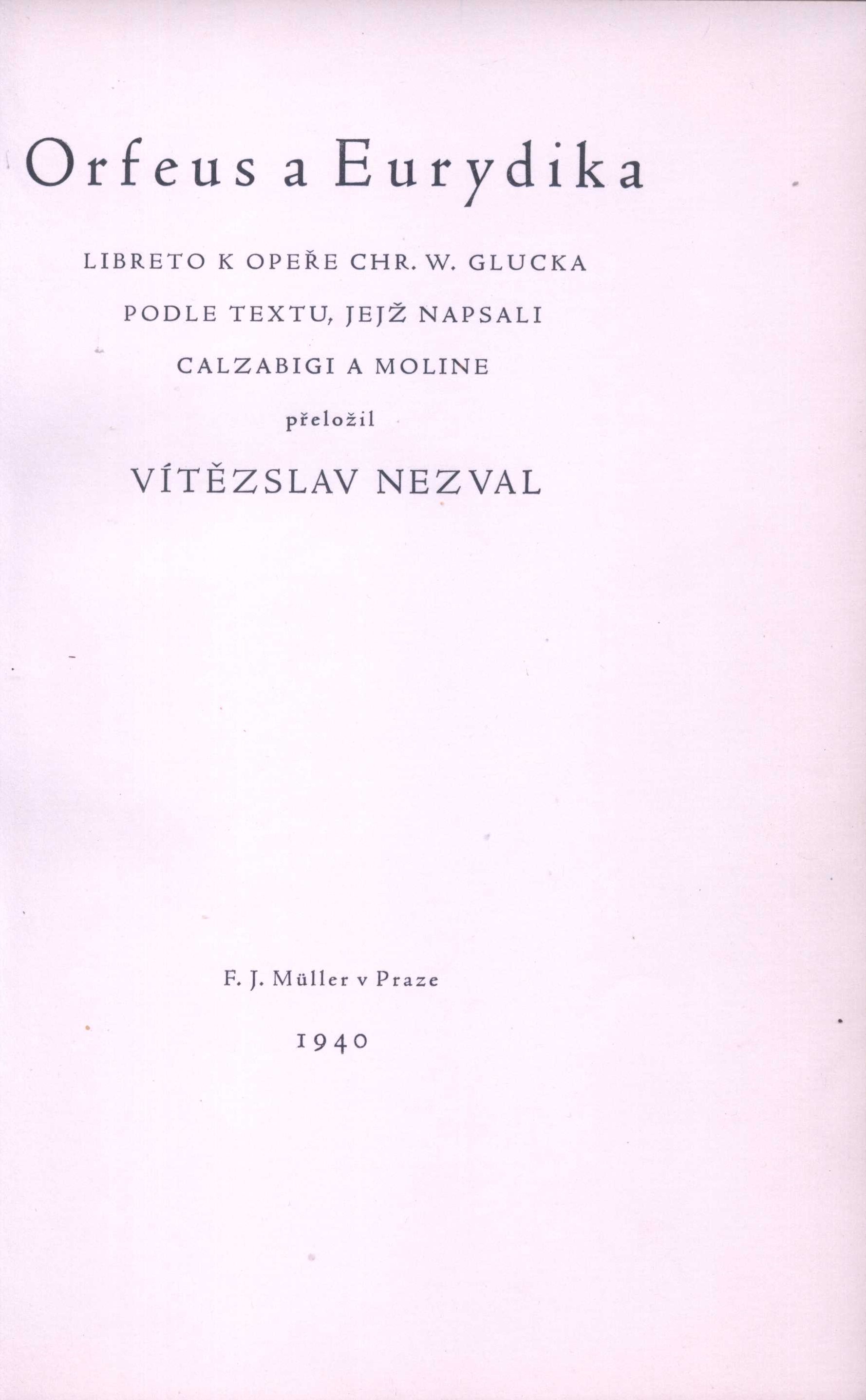 1. Title informationOrfeus a Eurydika : libreto k opeře Chr. W. Glucka / podle textu, jejž napsali Calzabigi a Moline ; přeložil Vítězslav Nezval