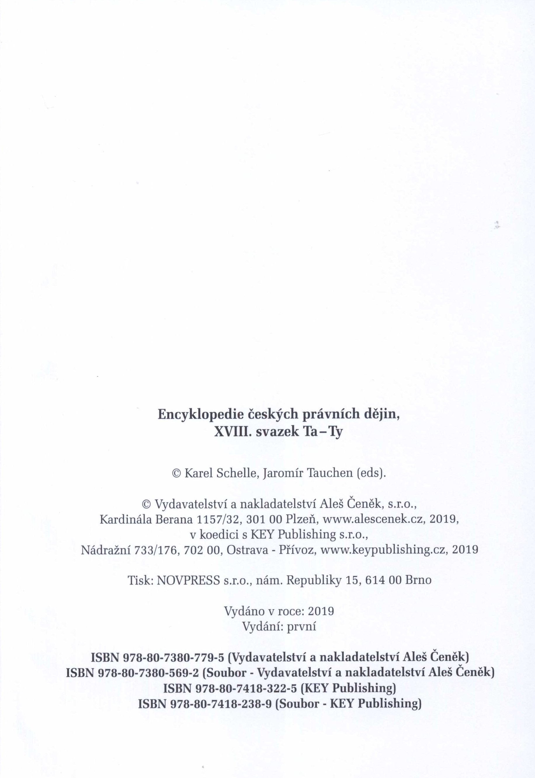 1. Title informationEncyklopedie českých právních dějin. XVIII. svazek, Ta-Ty / Karel Schelle, Jaromír Tauchen (eds).