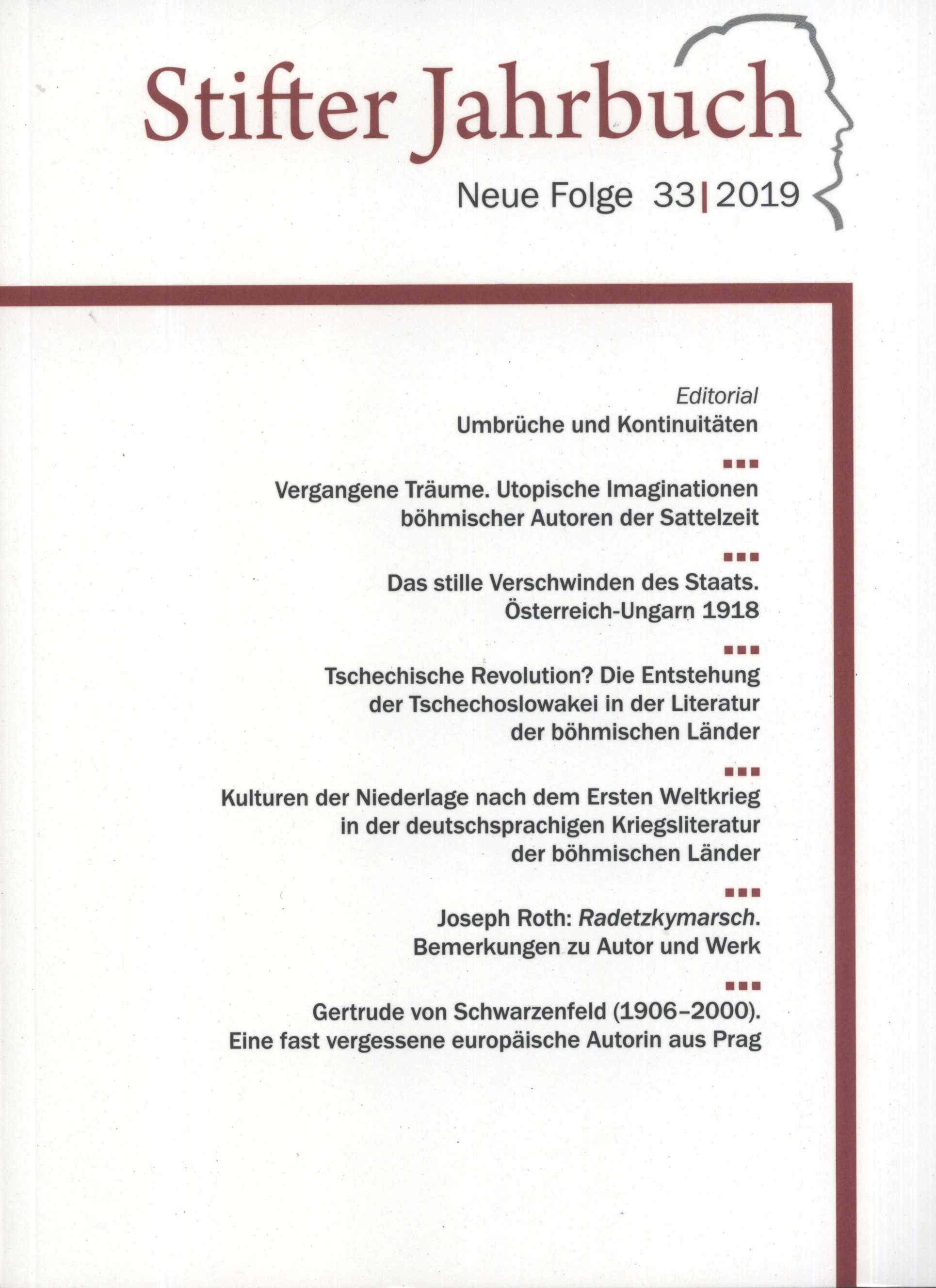 Title information Stifter Jahrbuch. Neue Folge Další autoři Mayer, Franziska (Publishing director) Corporation Adalbert Stifter Verein (Mnichov, Německo) (Publisher) Roč., číslo 33, 2019 Publication München : Adalbert Stifter Verein, [2020] Copyright notice date ©2020 Scope 206 stran : fotografie, portréty ; 23 cm ISBN 978-3-940098-19-1 (brožováno) Country Germany Language German Note Černobílé fotografie a portréty. - Seznam autorů.