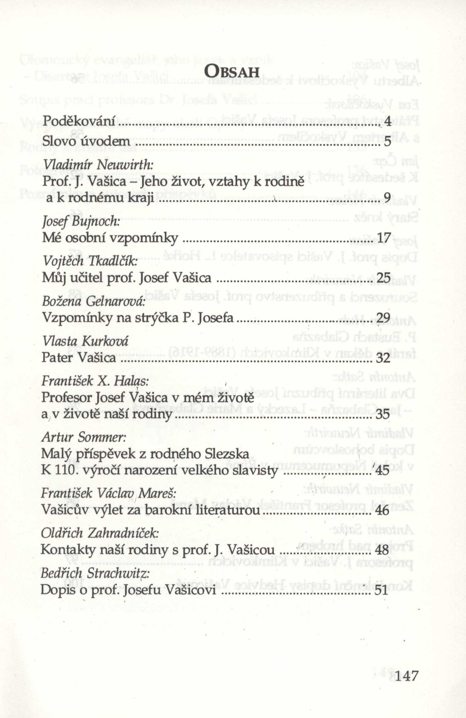 Tónovaná obálka zdobená fotografickým portrétem Josefa Vašici. - Frontispis. - Slovo úvodem. - Obsahuje bibliografii Josefa Vašici. - Poznámky o autorech příspěvků. - 1 složený list - Výsek z historické mapy okolí Opavy. - Černobílé fotografie, portréty a faksimile s popiskami.