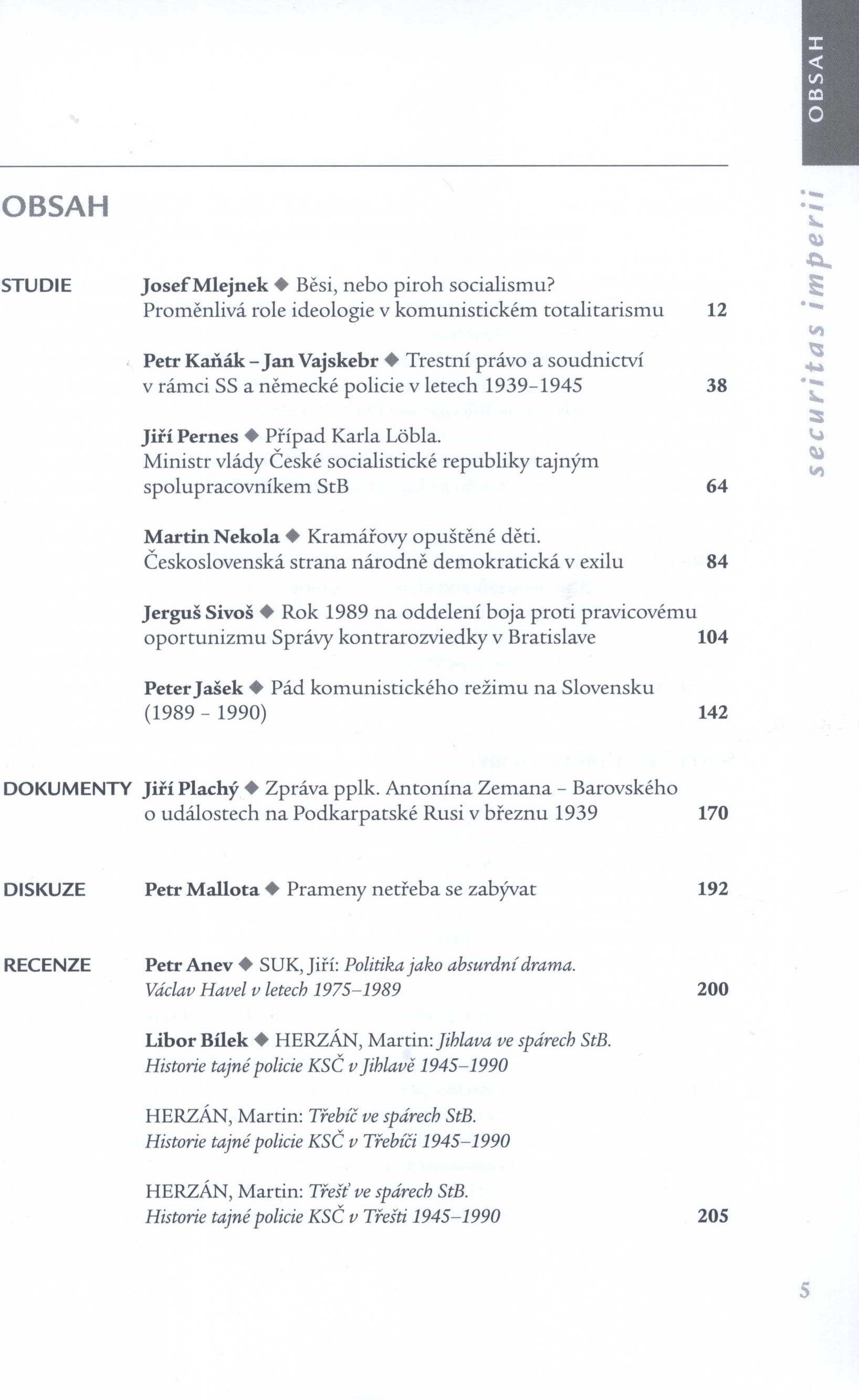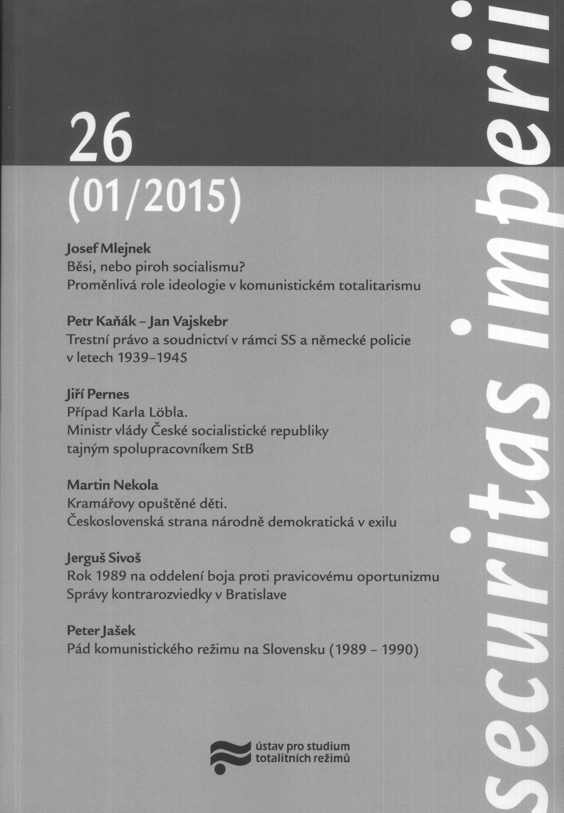 Title information Securitas imperii Další autoři Virkner, Patrik (Publishing director) Ježek, Jaroslav (Book designer) (Compositor) Corporation Ústav pro studium totalitních režimů (vědecký ústav) (Publisher) Unipress (tiskárna) (Printer) Roč., číslo 26 (01/2015), 2015 Publication Praha : Ústav pro studium totalitních režimů, 2015 Manufacture Turnov : Unipress, spol. s r.o. Scope 242 stran : fotografie, portréty, ilustrace, faksimile ; 23 cm ISSN 1804-1612 Country Czech Republic Language Czech * Slovak Note Čb. fotografie, portréty, ilustrace a faksimile. - Text částečně slovensky. - Anglická resumé.