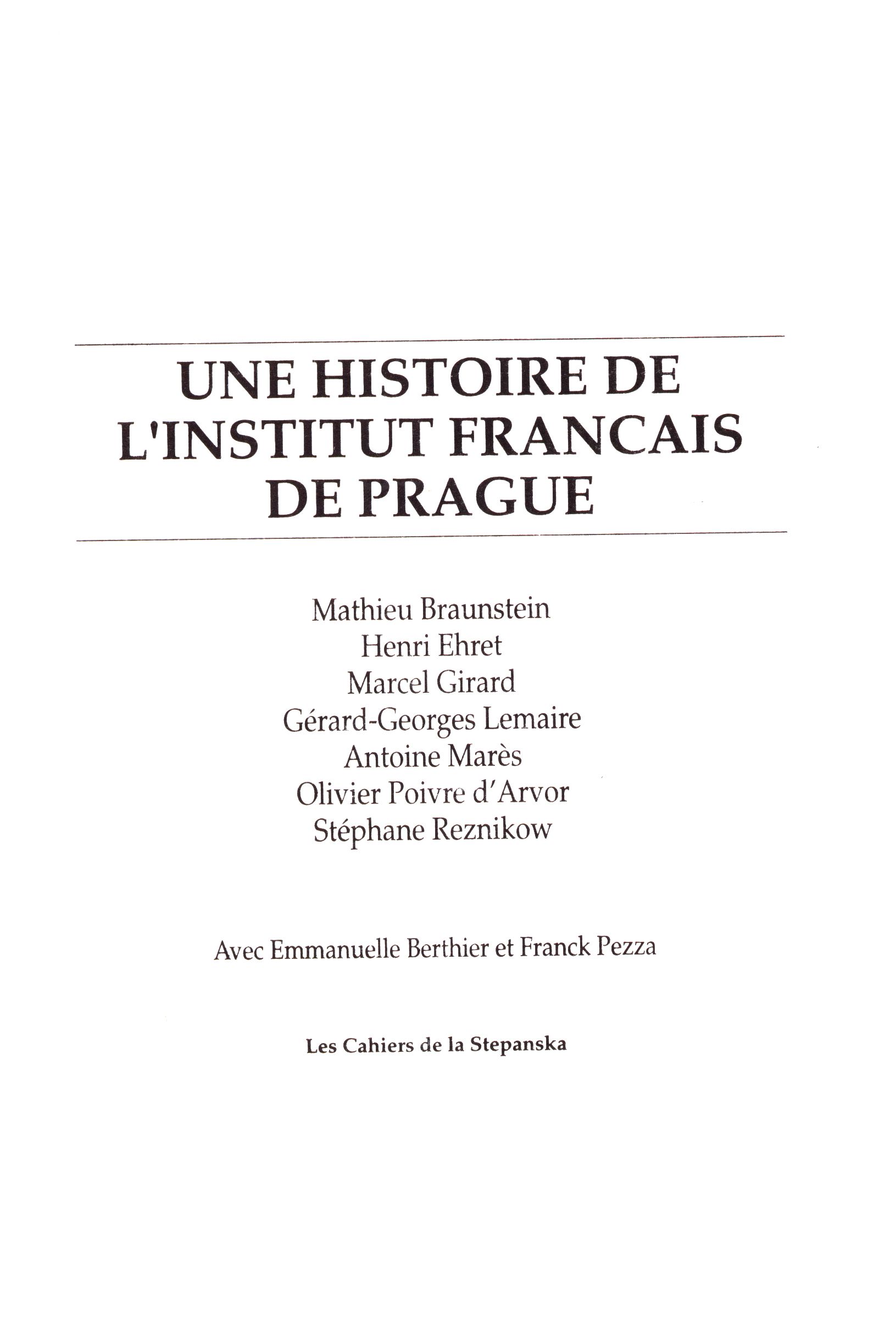 Cahiers de la Stepanska (Institut français de Prague)Country Czech Republic Language French Note Barevná zdobená obálka. - Chronologický přehled. - 3000 výtisků.