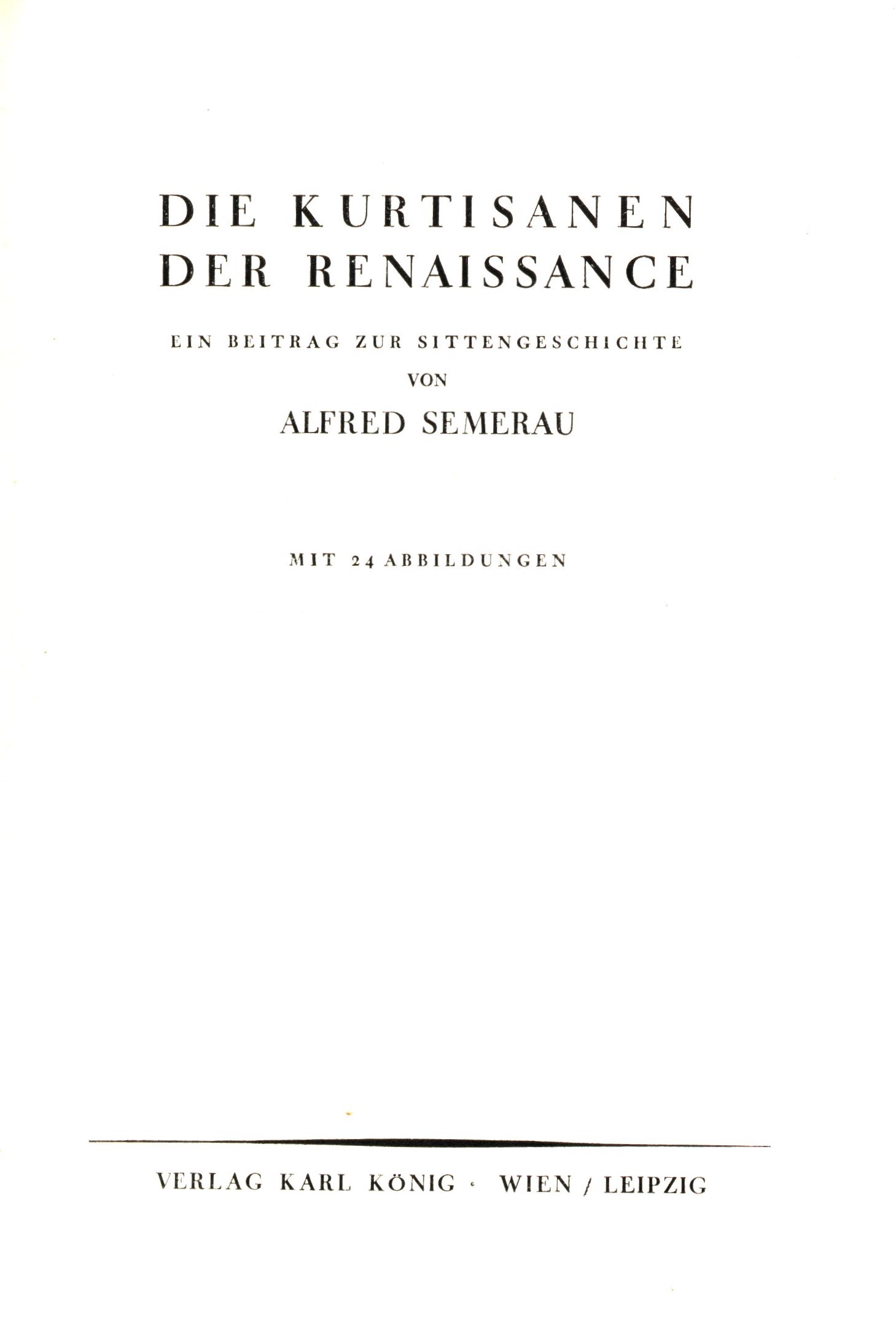 1. Title informationDie Kurtisanen der Renaissance : ein Beitrag zur Sittengeschichte / Alfred Semerau