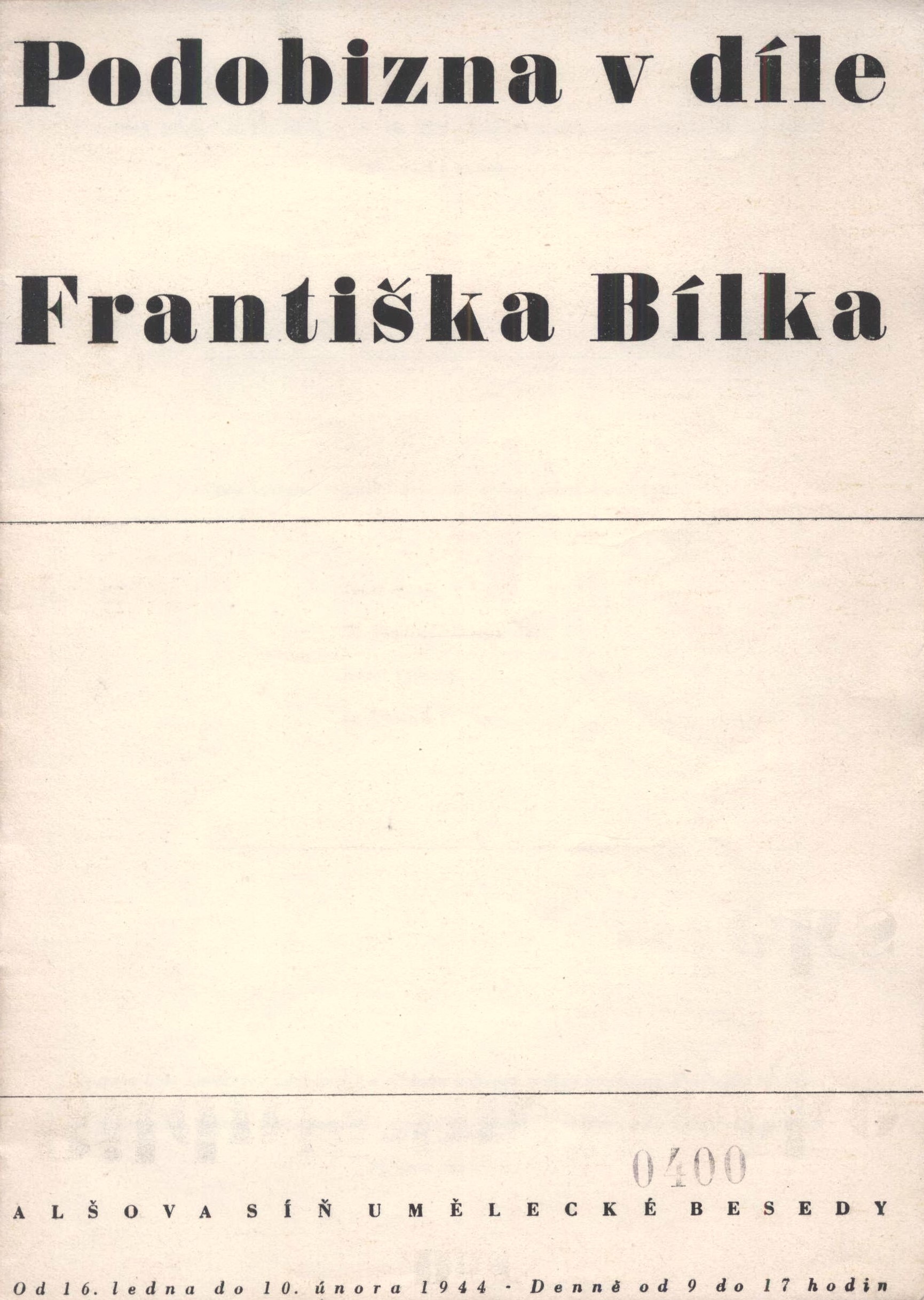 Title information Podobizna v díle Františka Bílka : Alšova síň Umělecké besedy, od 16. ledna do 10. února 1944 = Das Bildnis im Werke František Bílek : Alešsaal der Umělecká beseda, vom 16. Jänner bis 10. Feber 1944 / autoři textů V. Denkstein, Jaroslav Kabeš, Berta Mildová-Bílková Personal name Bílek, František, 1872-1941 (Artist) Další autoři Denkstein, Vladimír, 1906-1993 (Author) Kabeš, Jaroslav, 1896-1964 (Author) Mildová-Bílková, Berta, 1905-1971 (Author) Corporation Umělecká beseda (spolek). Alšova síň (Organizer of meeting) Umělecká beseda (spolek, Praha) (Publisher) Grafia (tiskárna, nakladatelství) (Printer) Publication Praha : Umělecká beseda, 1944 Manufacture Grafia Scope 12, 12 stran ; 21 cm ISBN (Brožováno) Country Czech Republic Language Czech * German Language of the original Czech Note Název z obálky. - Typografická obálka. - Seznam vystavených prací.