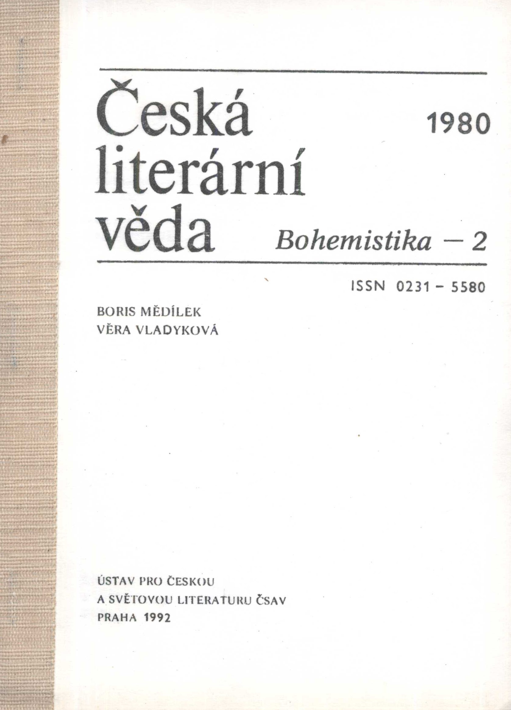 PublicationPraha : Ústav pro českou a světovou literaturu ČSAV, 1992
