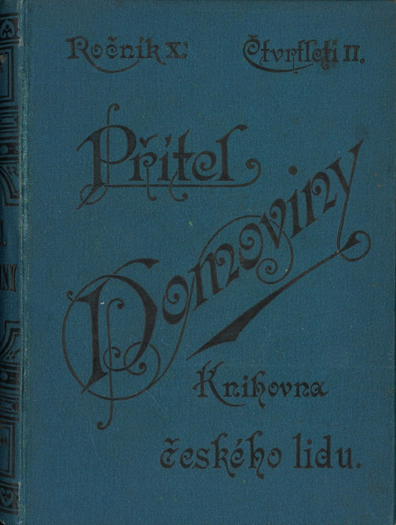 Přítel domoviny, (Přítel domoviny)Country Czech Republic Language Czech Note Celoplátěná ediční vazba. - Zdobený hřbet. - Bez přebalu. – Černobílé dvoustránkové ilustrace (grafiky). - Na titulním listu, v úvodu a závěru textu ozdobné viněty. - Na zadní desce vazby slepotiskem vyražené nakladatelské logo "Vydavatelstvo Přítele domoviny"