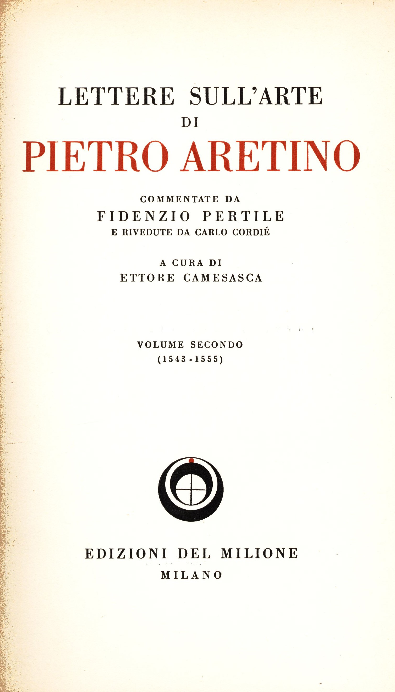 Title information Lettere sull'arte : Volume secondo (1543-1555) / di Pietro Aretino ; commentate da Fidenzio Pertile e rivedute da Carlo Cordié ; a cura di Ettore Camesasca Personal name Aretino, Pietro, 1492-1556 (Author) Další autoři Camesasca, Ettore, 1922-1995 (Editor) Cordié, Carlo, (Editor) 1910-2002 Corporation Edizioni del Milione (nakladatelství) (Publisher) Publication Milano : Edizioni del Milione, 1957 Manufacture Esperia Scope 455 stran, [64] stran obrazové přílohy : fotografie, reprodukce ; 24 cm ISBN (vázáno) Edition Vite, lettere, testimonianze di artisti italiani ; 3