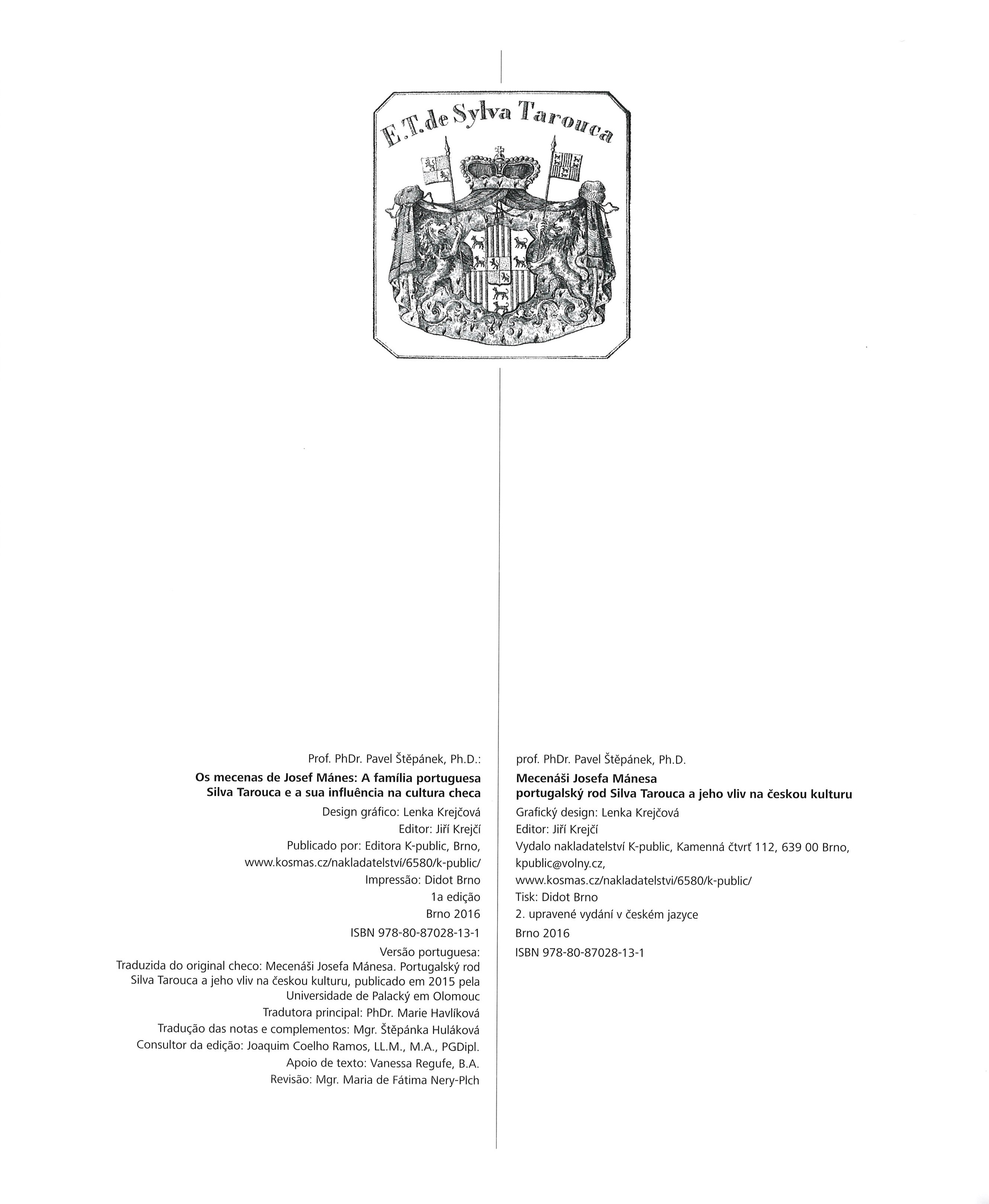 Title information Mecenas de Josef Mánes : a família Silva Tarouca e a sua influência na cultura checa = Mecenáši Josefa Mánesa : portugalský rod Silva Tarouca a jeho vliv na českou kulturu / Pavel Štěpánek ; tradutora principal: Marie Havlíková Personal name Štěpánek, Pavel, 1942- (Author) Další autoři Štěpánek, Pavel, 1942- Mecenáši Josefa Mánesa Štěpánek, Pavel, 1942- Mecenáši Josefa Mánesa. Portugalsky Havlíková, Marie, 1950- (Translator) Corporation K-Public (nakladatelství) (Publisher) Tiskárna Didot (Printer) Edition statement 2a edição adaptata Publication Brno : K-Public, 2016 Manufacture Didot Brno Scope 203 stran : ilustrace (převážně barevné), portréty, reprodukce, faksimile ; 29 cm ISBN 978-80-87028-13-1 (vázáno) Country Czech Republic Language Portuguese * Czech Language of the original Czech Note V tiráži uvedeno: 2. upravené vydání v českém jazyce; 1a edição (v portugalském jazyce)