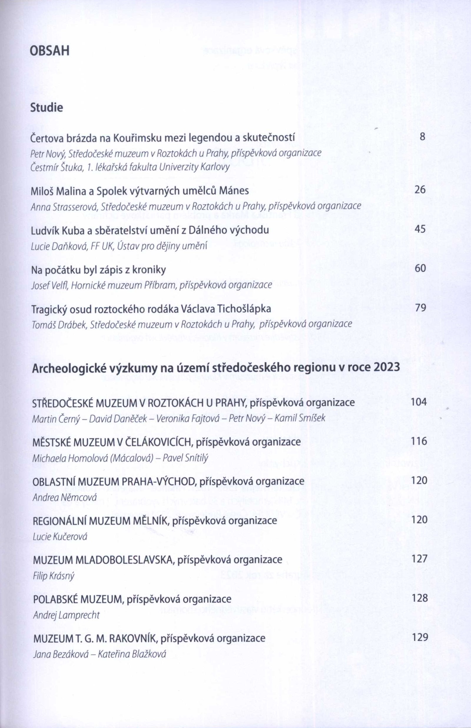 Keywords střední Čechy * historie kraje * vlastivěda kraje * osobnosti kraje * archeologický výzkum * studie * zprávy * recenze * r. 2024 * regionální sborník