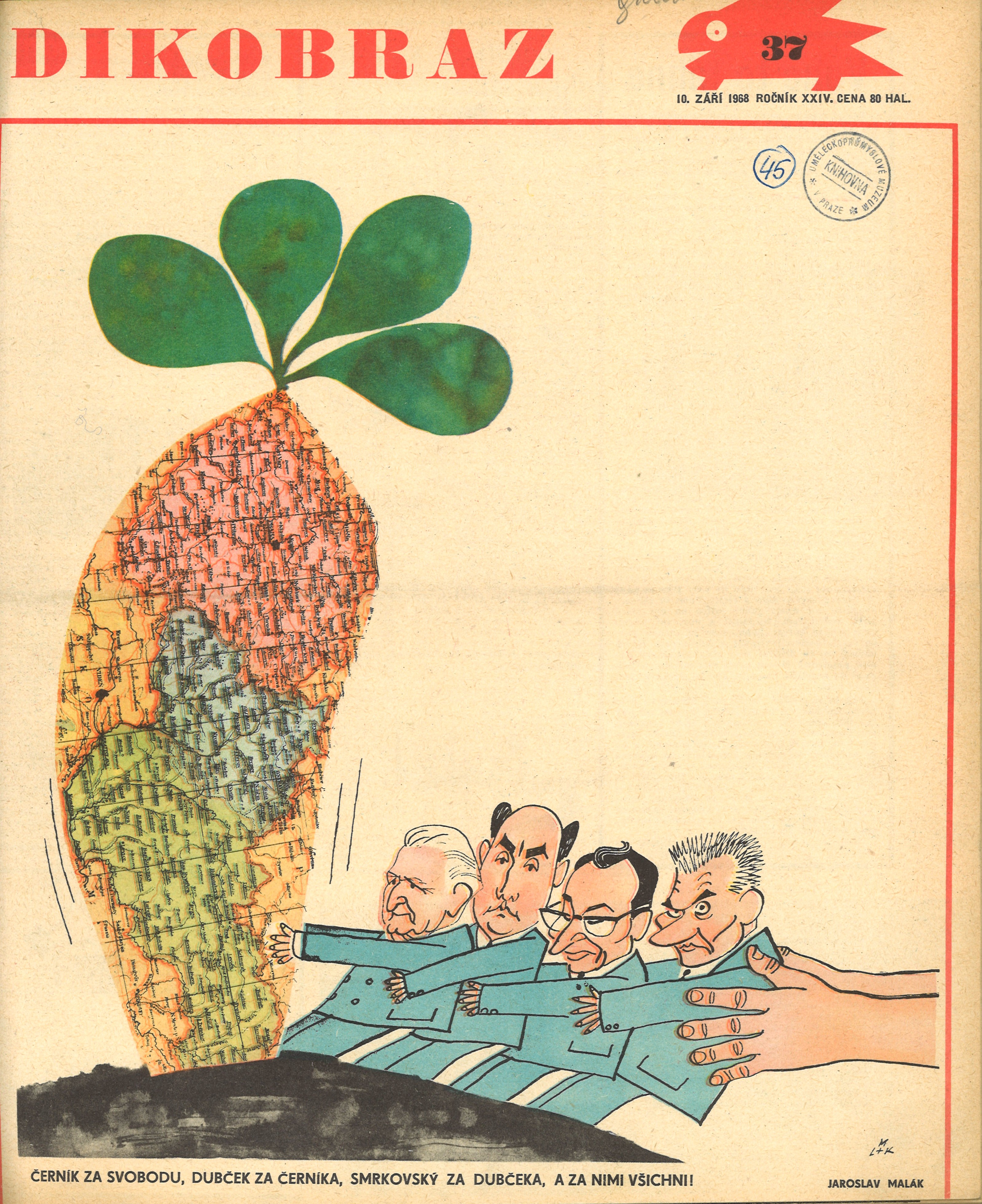 Title information Dikobraz : satirický a humoristický týdeník Další autoři Růžička Antonín (Publishing director) Corporation Nakladatelství Rudé právo (Publisher) Svoboda (tiskárna) (Printer) Roč., číslo Ročník 24, číslo 1-34, 36-52, 1968 Publication Praha : Rudé právo, vydavatelství ÚV KSČ 1968 Manufacture Svoboda, grafické závody, n. p., závod 1 Scope ilustrace ; 34 cm ISSN 0012-284X Country Czech Republic Language Czech Note Barevné obálky. - Čb. i barevné ilustrace, čb. fotografie. - Kreslené vtipy