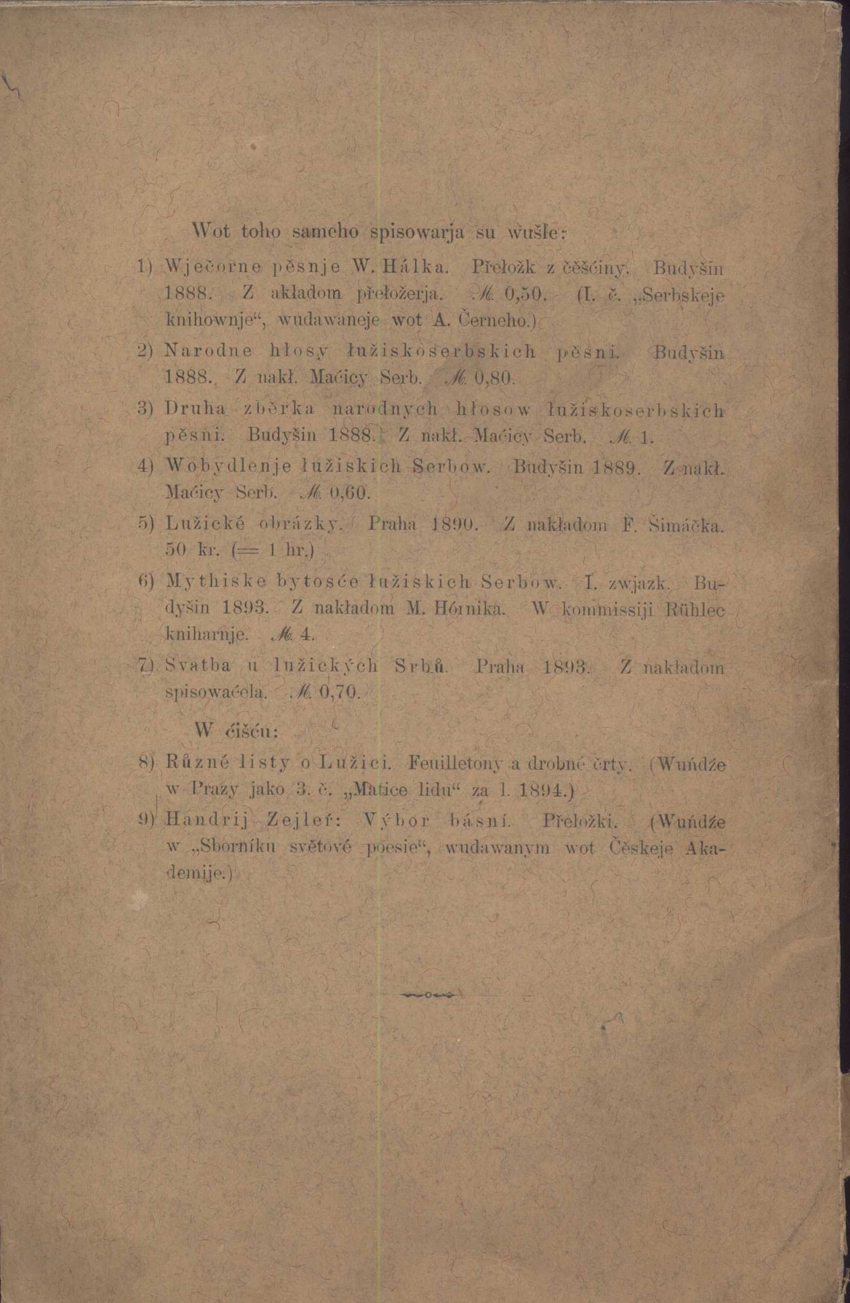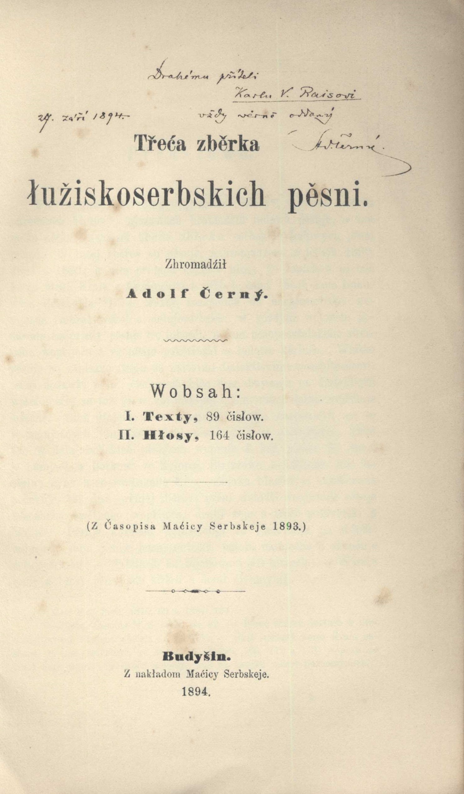 Keywords Lužičtí Srbové * písně * sbírka * Černý A. * r. 1894