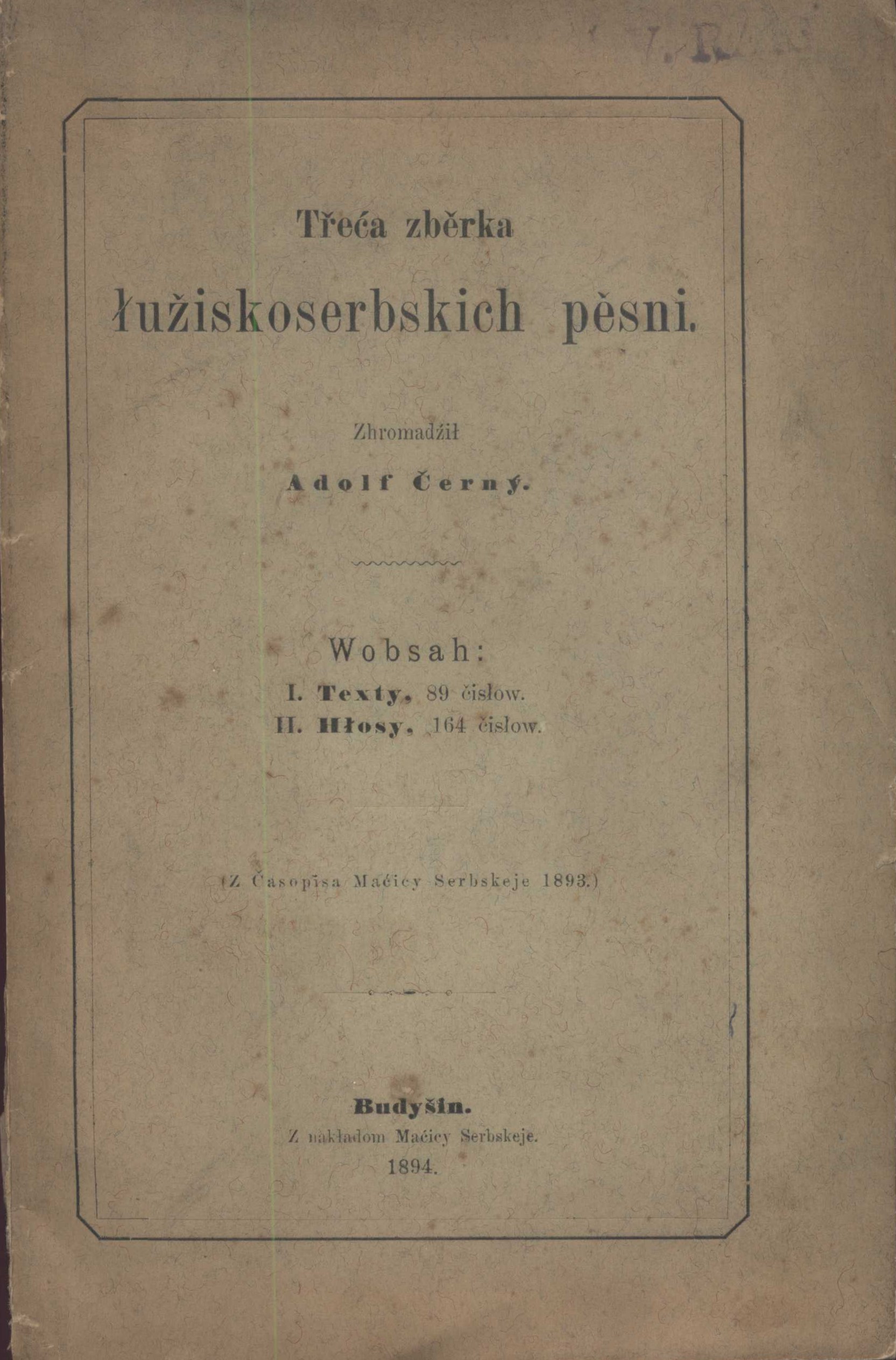 1. Title informationTřeća zběrka łužiskoserbskich pěsni / zhromadźił Adolf Černý