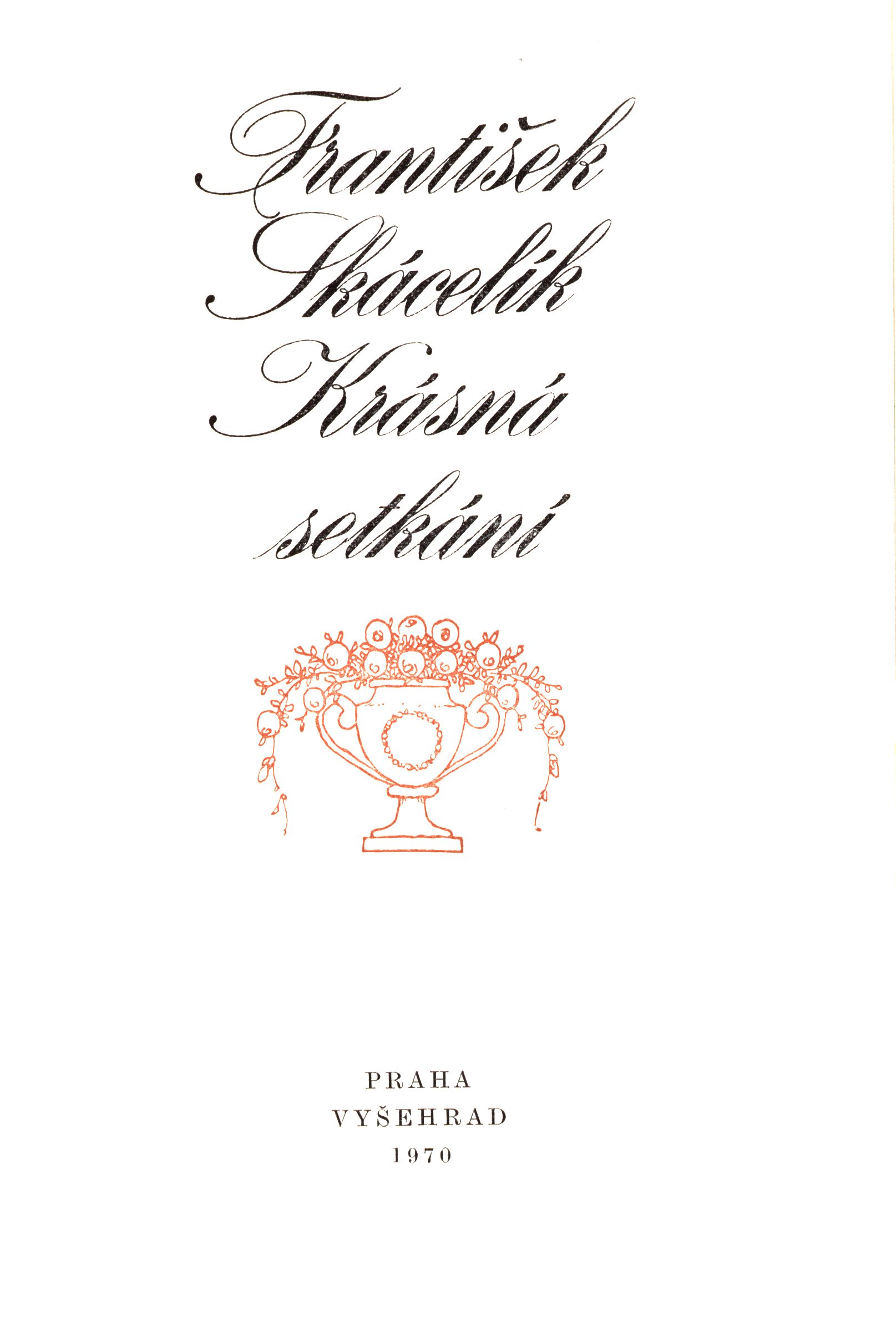 Title information Krásná setkání / František Skácelík ; k vydání připravil, doslov napsal a poznámkami opatřil Bedřich Slavík ; obálku, vazbu a grafickou úpravu navrhla Hana Blažejová Personal name Skácelík, František, 1873-1944 (Author) Další autoři Slavík, Bedřich, 1911-1979 (Redactor) (Author of afterword, colophon, etc.) (Bibliographic antecedent) Blažejová, Hana, 1937- (Book designer) (Bookjacket designer) Corporation Vyšehrad (nakladatelství) (Publisher) Mír, novinářské závody (tiskárna) (Printer) Edition statement První vydání Publication Praha : Vyšehrad, 1970 Manufacture Mír Scope 355 stran ; 22 cm ISBN (Vázáno) Edition Historica