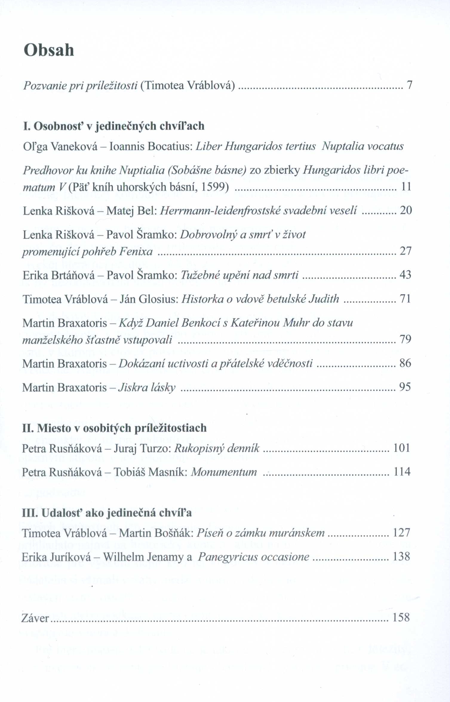 1. Title informationSvet v jedinečnom okamihu : (komentovaný výber textov príležitostnej tvorby v slovenskej literatúre 16. - 18. storočia) / ed. Timotea Vráblová ; preklad z latinčiny Oľga Vaneková, Alexandra Dekanová, Erika Juríková ; preklad z maďarčiny Anita Braxatorisová ; grafická úprava a zalomenie Lukáš Chovanec