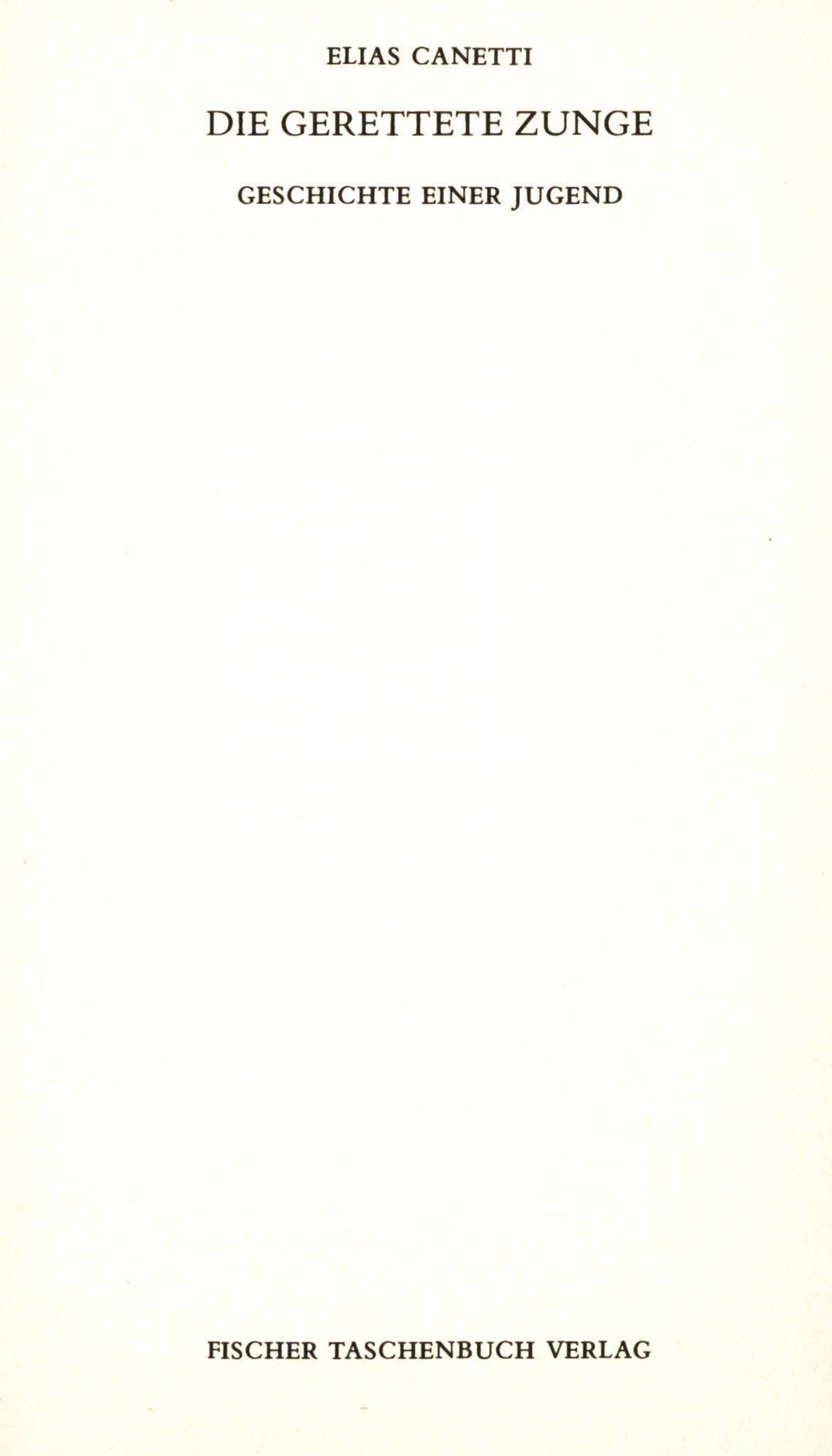 1. Title informationDie gerettete Zunge : Geschichte einer Jugend / Elias Canetti