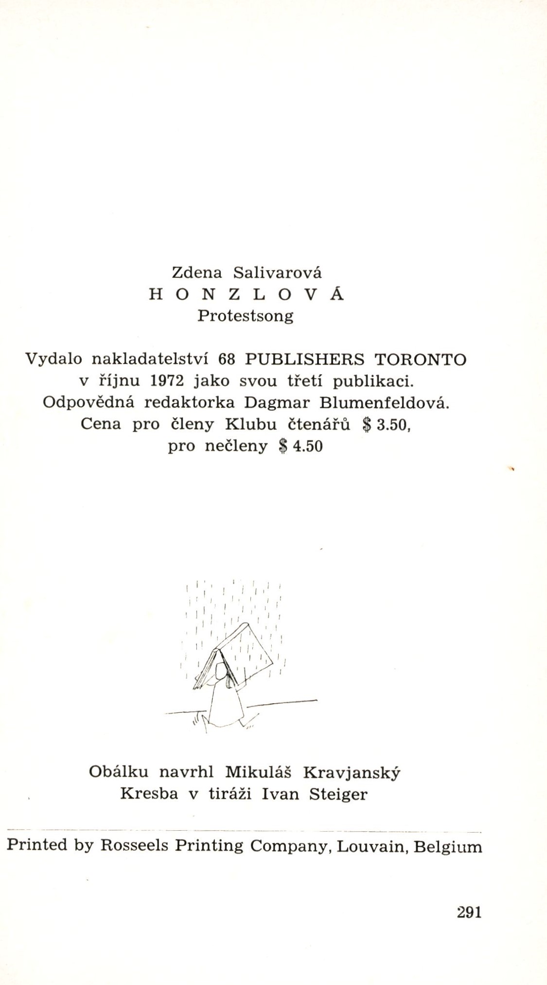 1. Title informationHonzlová : protestsong / Zdena Salivarová ; obálku navrhl Mikuláš Kravjanský ; kresba v tiráži Ivan Steiger