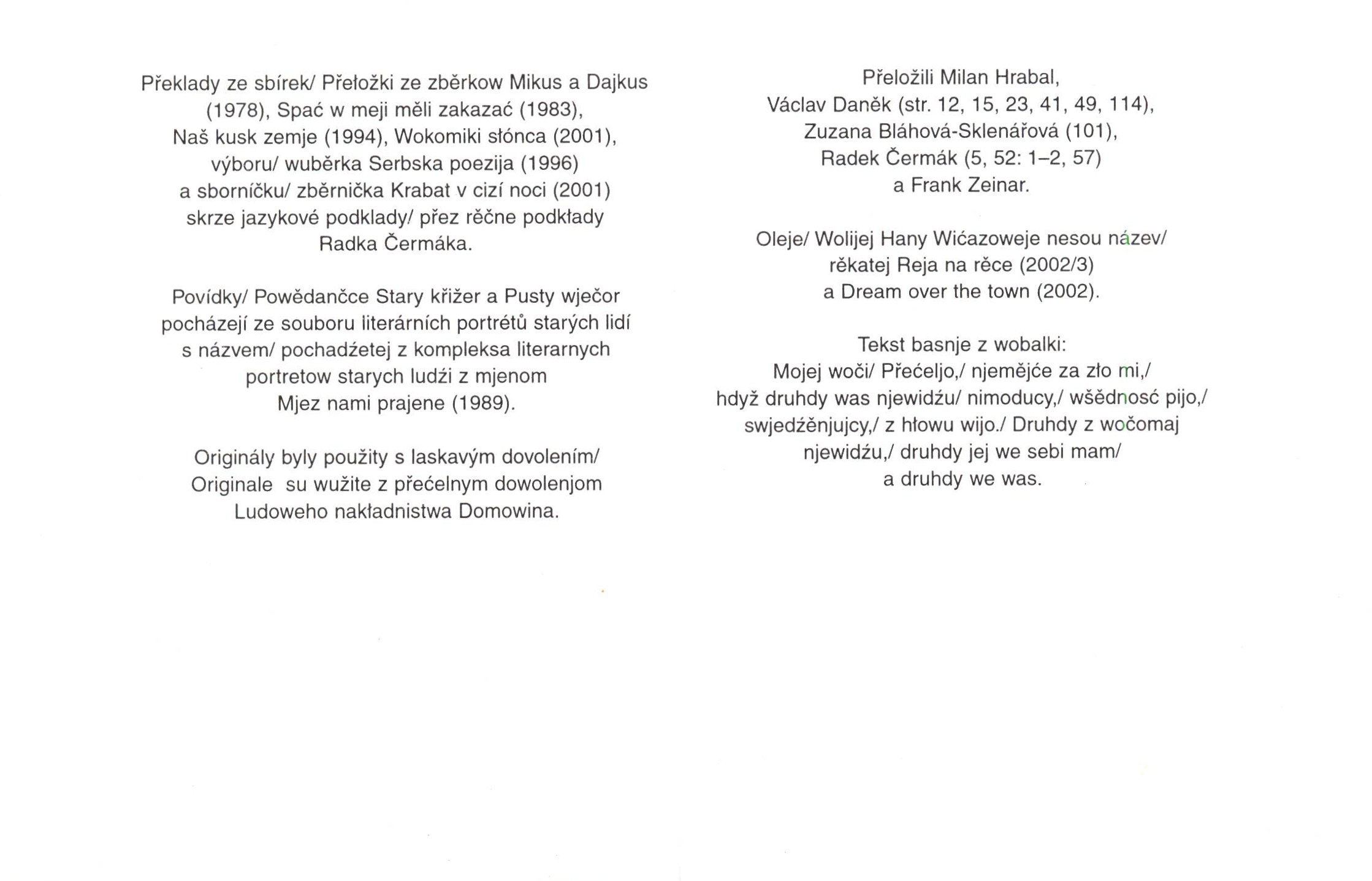 Language noteSouběžný český text. - Přeloženo z lužické srbštiny