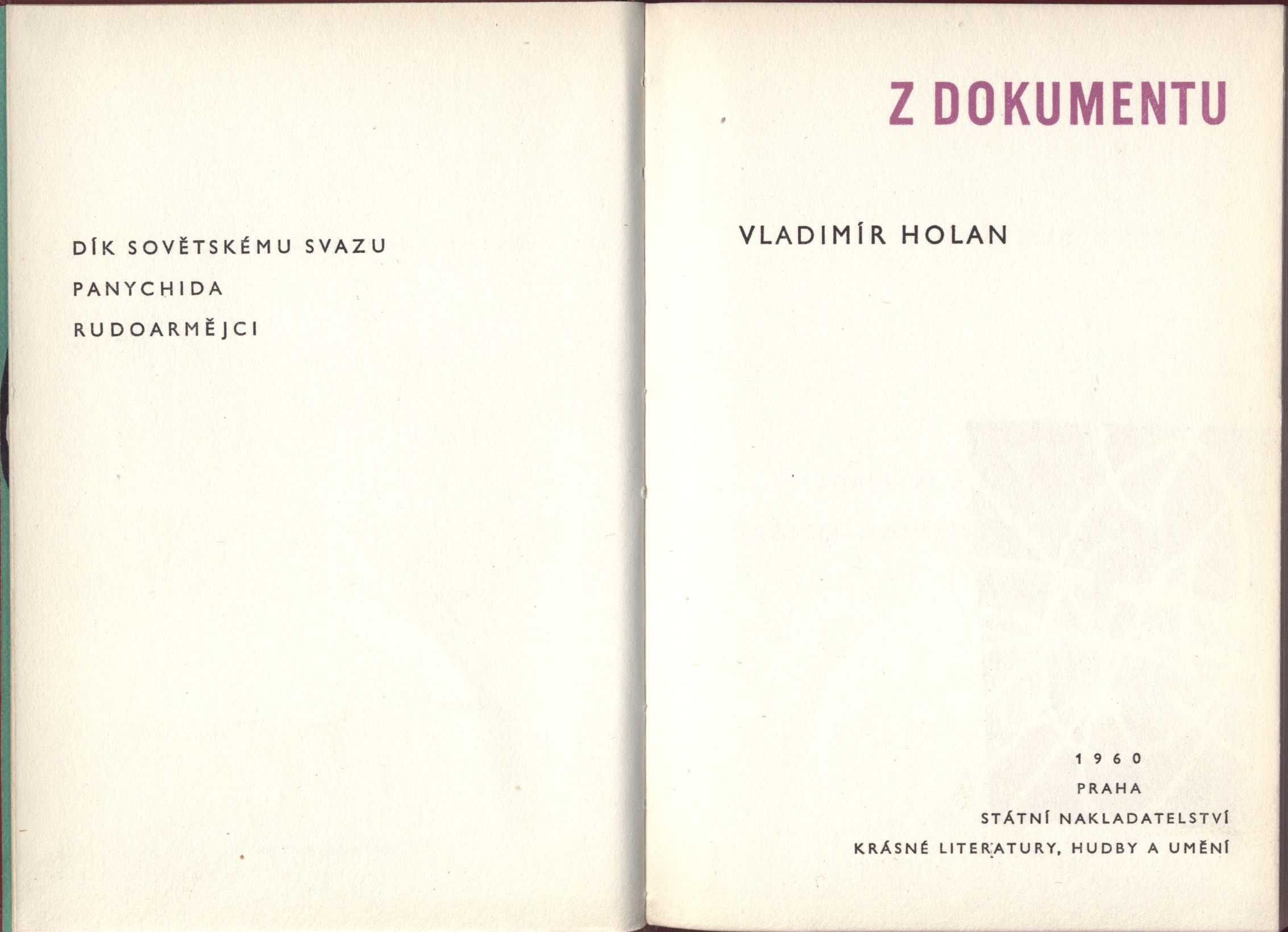 Document kind monografie Partial contents Obsahuje: Dík Sovětskému svazu ; Panychida ; Rudoarmějci Keywords česká literatura * poezie * básně * oslavné básně * básnické skladby * Sovětský svaz * osvobození * r. 1945 UDC 82-142 * 821.162.3-1 Uživatelské pole PNP U sign. OŘíha 044 původní vazba v červenohnědé kůži se slepotiskem a zlacením. - Barevně zdobené předsádky. - Zdobený vakát s nakladatelskou značkou. - Patitul, proti copyright. - Rozložený dvoubarevný titulní list. - Ediční poznámka (V. Justl). - Obsah. - Tiráž: "Edice Skvosty. Svazek 22. Řídí Vladimír Justl. Vladimír Holan Z dokumentu. Vazba, předsádky a grafická úprava Jan Kotík. Vydalo Státní nakladatelství krásné literatury, hudby a umění, n. p., jako svou 1105. publikaci v redakci krásné literatury. Praha 1960. Odpovědný redaktor Vladimír Justl. Z nové sazby písmem petit Gill Sans-Serif vytiskla Polygrafia 3, tiskařské závody, n. p., závod Jiřího Dimitrova v Praze 7, Dobrovského 27. Vazbu provedla Stráž, tisk. záv., n. p., Plzeň, závod 4, Vimperk. Formát papíru 86 x 122 cm. ... Náklad 3000. ... Vydání ve Skvostech první. Cena výtisku brož. 4 Kčs, v celokožené vazbě 23 Kčs." - V tiráži ještě (razítkem, modře): "Nová cena Kčs 12. - 64". - Vazba a blok knihy zvenčí mírně zašpiněné. - Jinak zachovalý výtisk. Vyd. k 15. výr. osvob. Sovět. armádou. - Knihovna Miloš Vacík. Básně zahrnuté do tohoto svazku vycházejí knižně po třetí. Call number Track No. Location Info C12a 1701 20320/00-d Sbírka LK P 45 g 103 Sbírka OŘíha 044 1981/2010 Sbírka