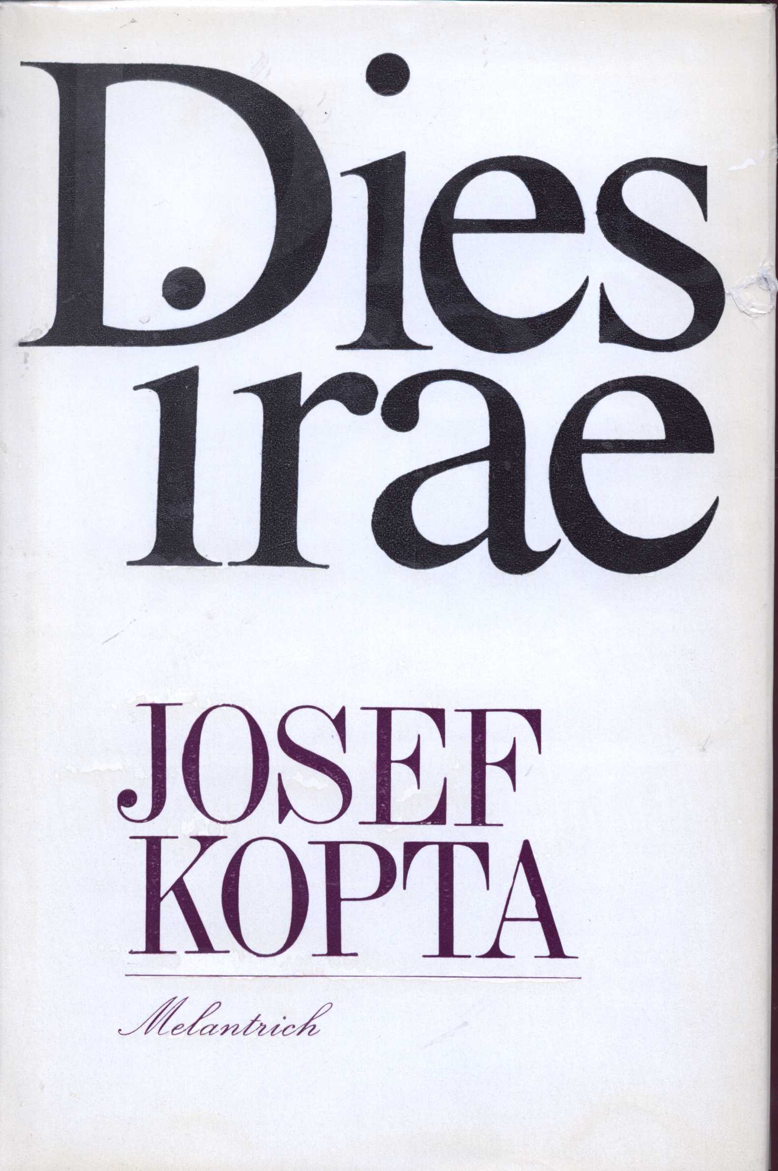 Title information Dies irae / Josef Kopta ; [přebal, vazbu a graf. úpr. navrhl Oldřich Hlavsa ; doslov Petr Kopta] Personal name Kopta, Josef, 1894-1962 (Author) Další autoři Kopta, Petr, 1927-1983 (Author of afterword, colophon, etc.) Hlavsa, Oldřich, 1909-1995 (Book designer) Corporation Melantrich (nakladatelství) (Publisher) Edition statement 3. vyd. Publication Praha : Melantrich, 1970 Manufacture Tisk 2) Scope 190 s. ISBN (váz.) Country Czech Republic Language Czech Note Na zál. pozn. o knize. -- Doslov.