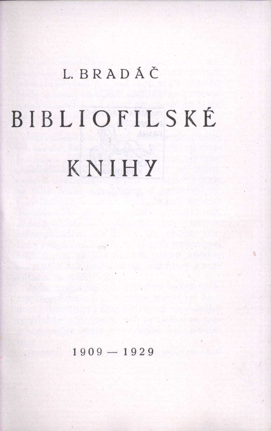 1. Title informationBibliofilské knihy : 1909-1929 / L. Bradáč