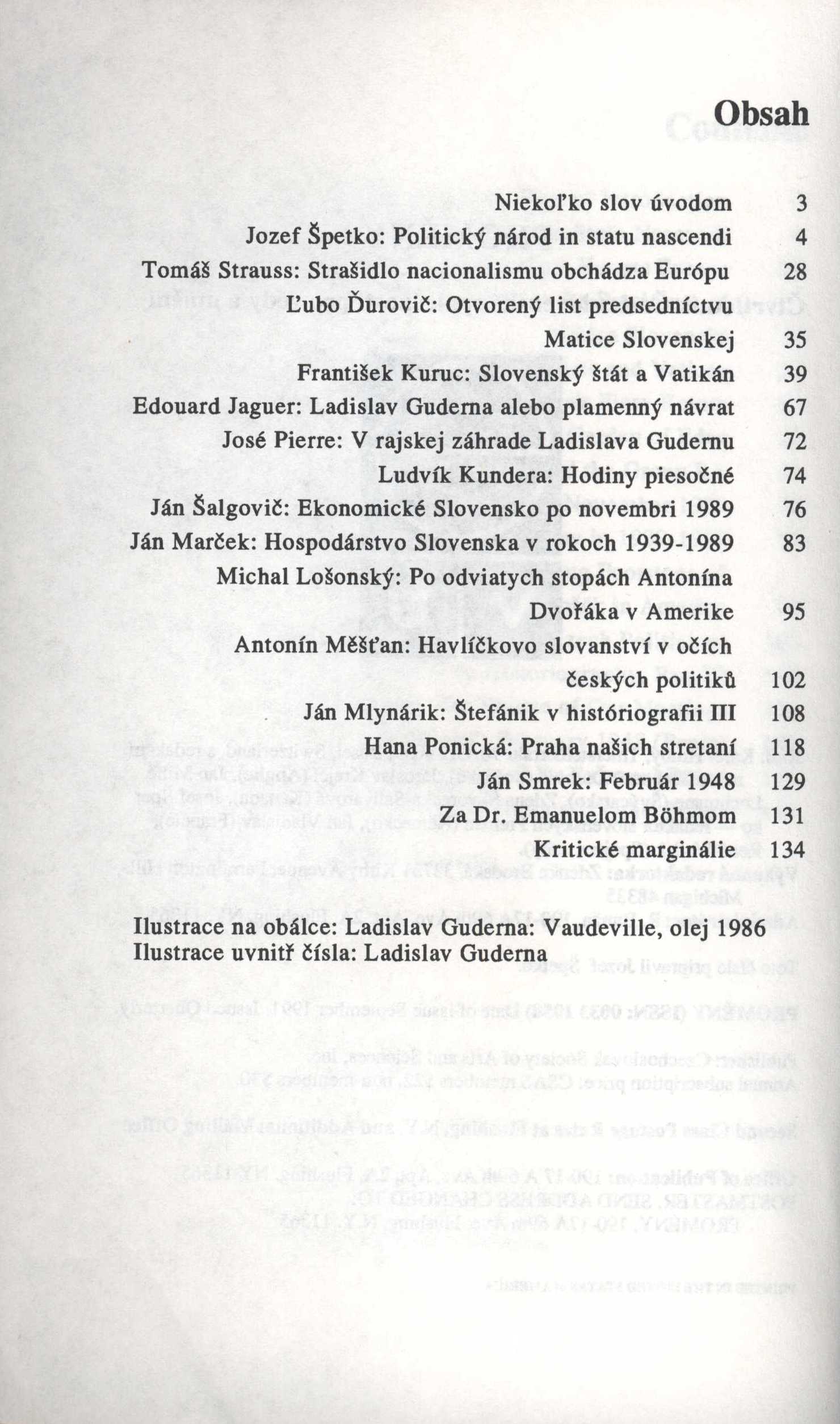 Title information Proměny = Premeny : čtvrtletník Československé společnosti pro vědy a umění Další autoři Hrubý, Karel, 1923-2021 (Publishing director) Brodská, Zdenka (Redactor) Špetko, Jozef, 1932-2006 (Editor) Corporation Společnost pro vědy a umění (nezisková a nepolitická organizace) (Publisher) Roč., číslo Ročník 28, číslo 1-4, 1991 Publication New York : Czechoslovak Society of Arts and Sciences in America, 1991 Scope ilustrace, fotografie ; 21,5 cm ISSN 0033-1058 Country United States Language Czech * Slovak Note Čb. ilustrace a fotografie. - Číslo 3 vyšlo pod názvem Premeny ve slovenštině a je věnované slovenským problémům