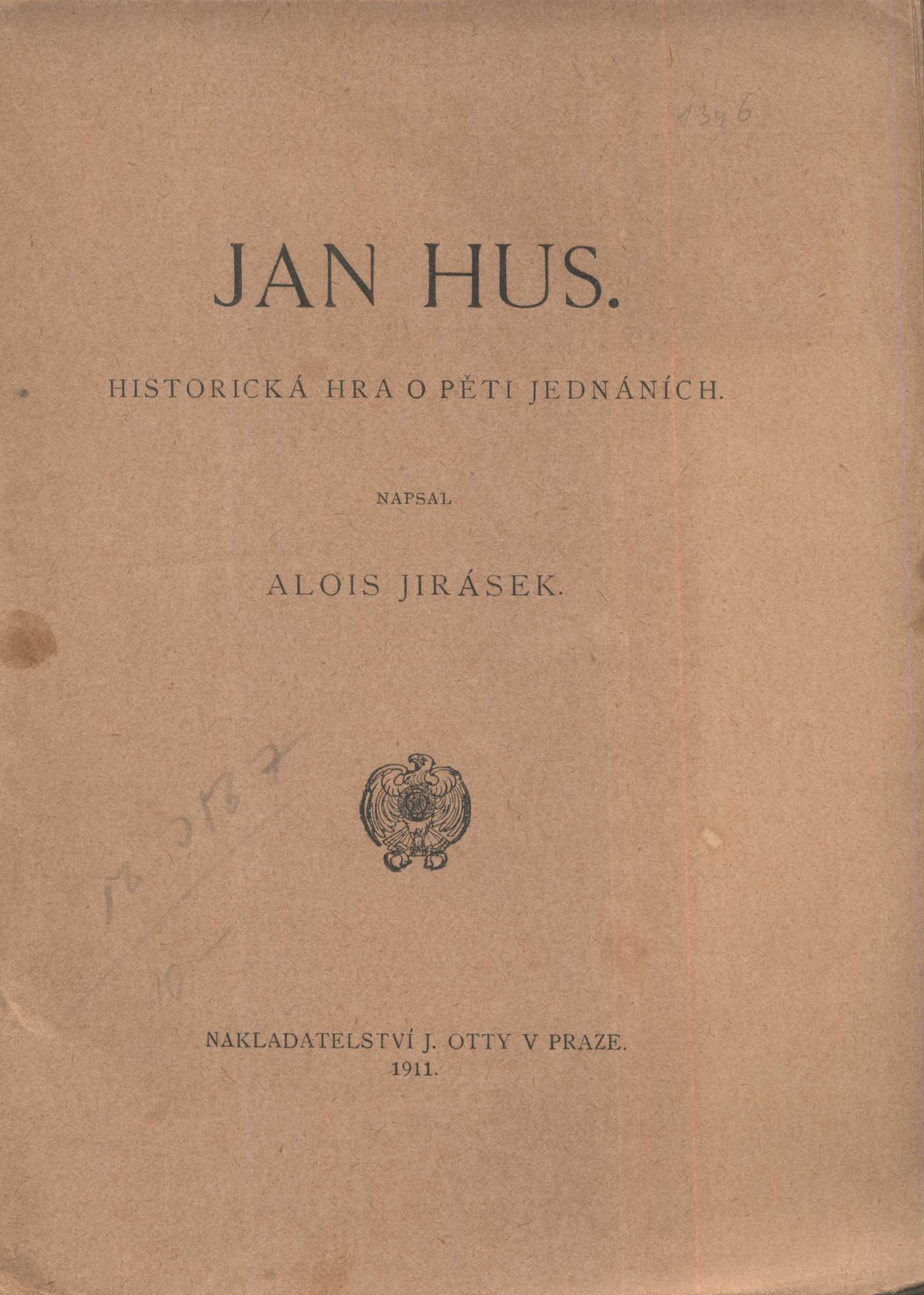 Title information Jan Hus : historická hra o pěti jednáních / Alois Jirásek Personal name Jirásek, Alois, 1851-1930 (Author) Další autoři J. Otto (nakladatelství) (Publisher) Česká grafická akciová společnost Unie (v Praze) (Printer) Publication V Praze : Nakladatelství J. Otty, 1911 Manufacture (Unie) Scope 147 s. ISBN brož. Country Czech Republic Language Czech Note Červený a černý tisk obálky. - Nakladatelský signet na přední straně obálky a na titulním listu. - Informace o dalších dílech autora.