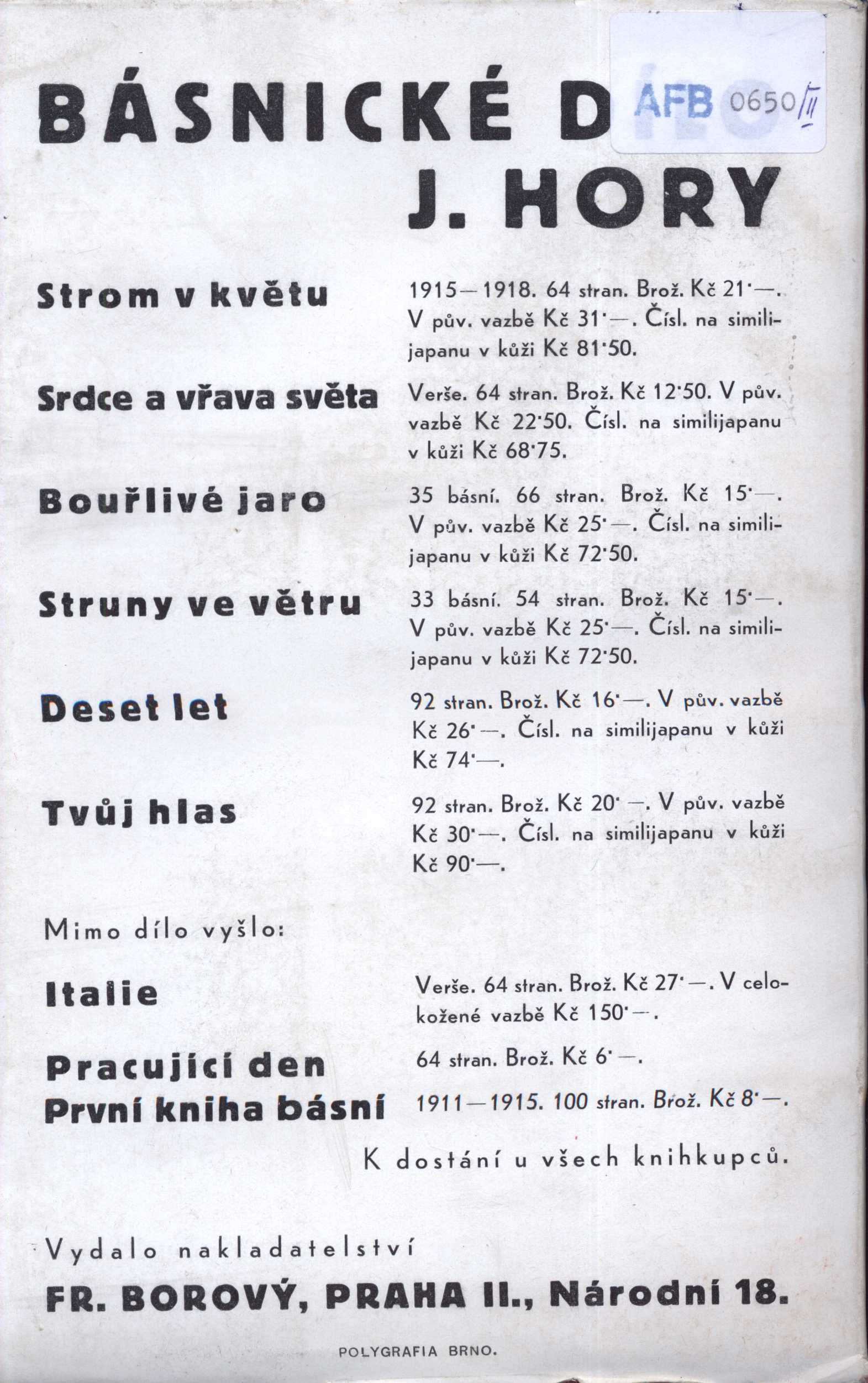 PublicationV Praze : Fr. Borový, 1931