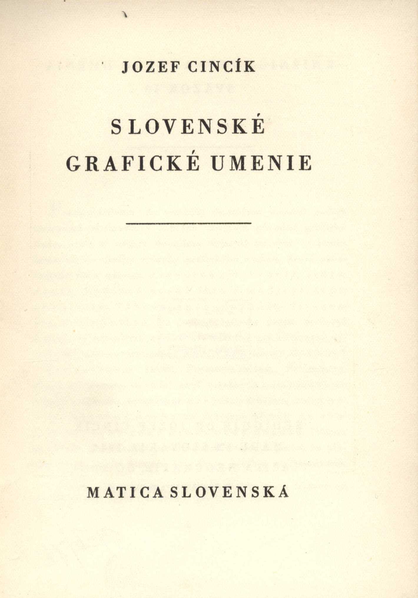 Title information Slovenské grafické umenie / Jozef Cincík Personal name Cincík, Jozef, 1909-1992 (Author) Další autoři Karásek ze Lvovic, Jiří, 1871-1951 (Inscriber) Corporation Matica slovenská (Martin, Slovensko) (Publisher) Neografia (tiskárna) (Printer) Publication [Martin] : Matica slovenská, 1944 Manufacture Neografia) Scope 93 s., [32] s. příl. : il. ISBN (váz.) Edition Knižnica výtvarného umenia sv. 10