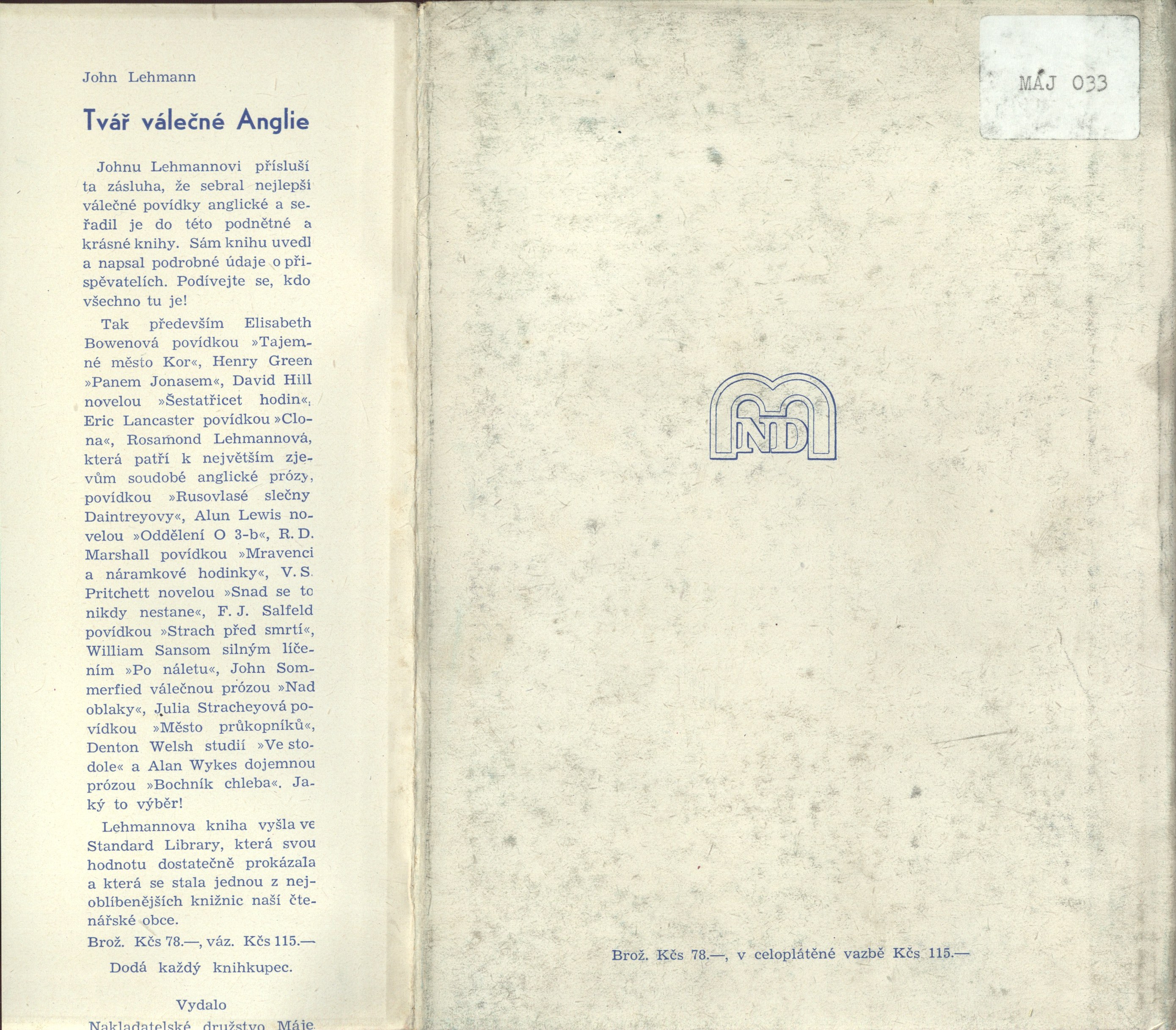 Májová knižnice (Nakladatelské družstvo Máje)Country Czech Republic Language Czech Language of the original Italian Note Ilustrovaná obálka. - Na záložkách upoutávky. - Zdobená vazba. - Nakladatelská značka. - Patitul. - Titulní list. - Doslov autora. - Edice nad tiráží. - Na zadní straně obálky nakladatelská značka.