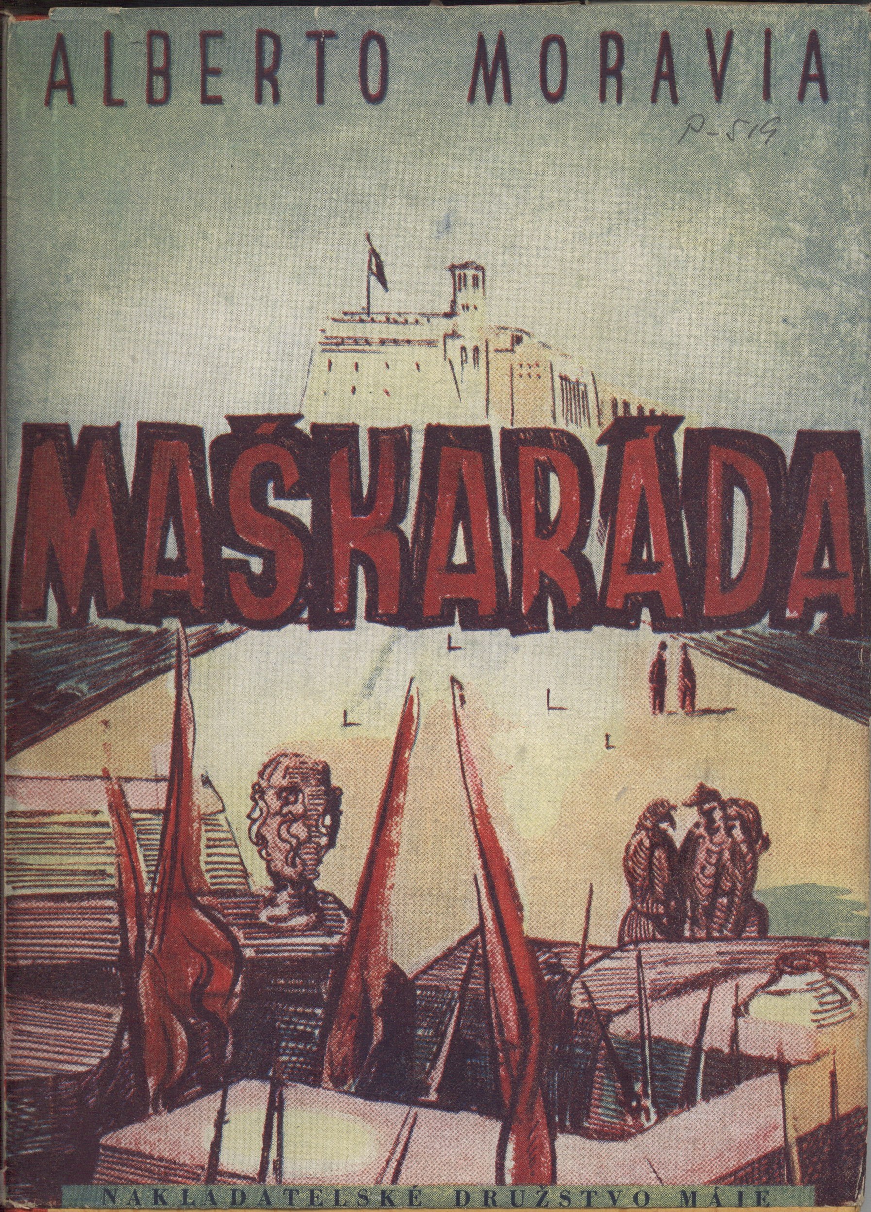 Document kind monografie Translation of La Mascherata Keywords italská literatura * próza * překlad * román * Itálie * fašismus UDC 821.131.1 * 82-3 * =030 * 82-31 * (450) * 329.18 Uživatelské pole PNP U sign. Máj 033 (vázaný výtisk) barevně ilustrovaná obálka (V. Fuka). - Na přední záložce upoutávka na knihu. – Poloplátěná vazba s jasně žlutým zdobeným papírovým polepem a barevnou ražbou; oranžový hřbet s hnědým textem. – Na přední předsádce razítko Archiv Čs. spisovatel, č. P 519. - Nakladatelská značka. - Patitul. - Titulní list. - Doslov autora. - Edice nad tiráží. – Na zadní záložce upoutávka na jiný titul. - Na zadní straně obálky opakující se nakladatelská značka a ceny. Tiráž: "Májová knižnice svazek 12. Alberto Moravia. Maškaráda. Z italského originálu La Mascherata přeložil Jaromír Fučík. I. vydání. S obálkou Vladimíra Fuky vydalo Nakladatelské družstvo Máje v Praze roku 1947 nákladem 4.400 výtisků.Písmem garmond Pressa vytiskla knihtiskárna Jan Andreska vd., v Praze XII, Bělehradská 10. Cena brož. Kčs 78.-, váz. Kčs 115,-" Rozsah: 154, [2] s. Rozměr: 20,9 cm Originál La Mascherata vyšel v roce 1941. Call number Track No. Location Info Máj 033 1827/2013 Sbírka