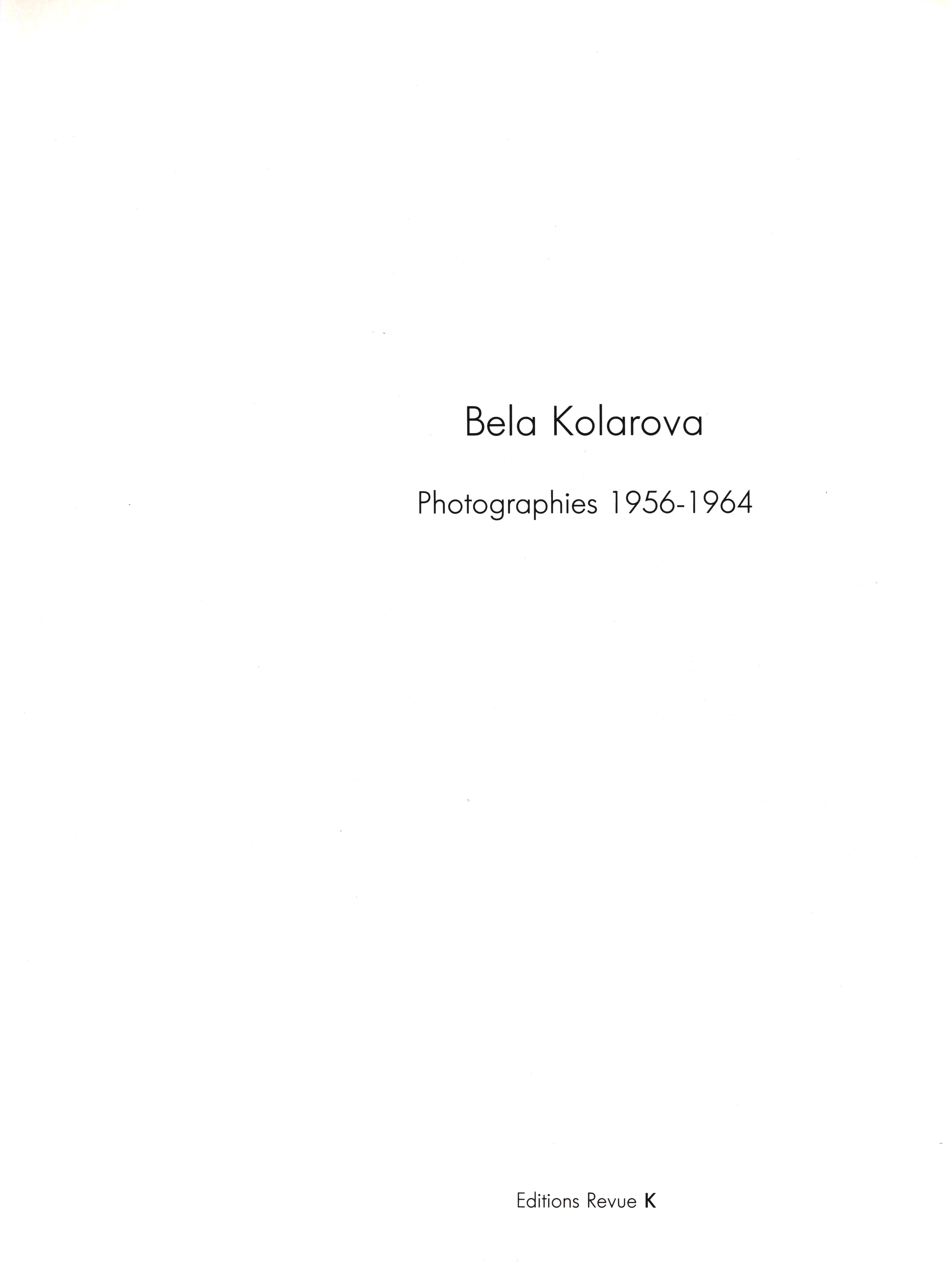 Title information Bela Kolarova : photographies 1956-1964 / Běla Kolářová Personal name Kolářová, Běla, 1923-2010 (Artist) Další autoři Revue K (Publisher) Další var.názvy Bela Kolarova : photographies 1956-1964 Publication Altfortville : Editions Revue K, 1989 Manufacture printed in Italy Scope 127 stran : reprodukce ; 30 cm ISBN (brožováno) Country France Language French * English Note Text francouzsky. - Obálka s černobílou fotografií. - Tiráž. - Frontispis. - Černobílé reprodukované fotografie, asambláže. - Biografie autorky, přehled výstav, bibliografie.