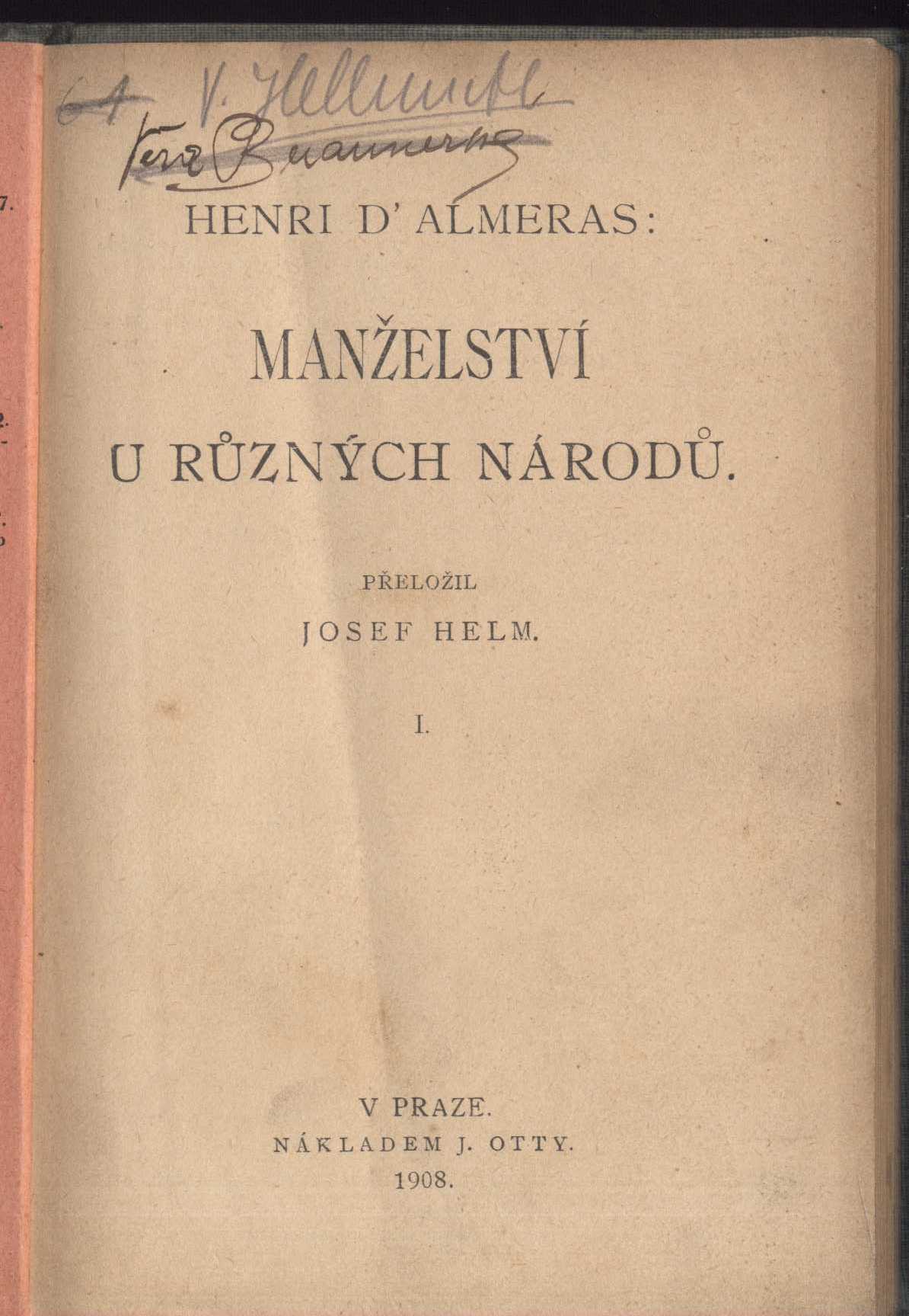 1. Title informationManželství u různých národů / Henri d'Alméras ; přeložil Josef Helm. 1.