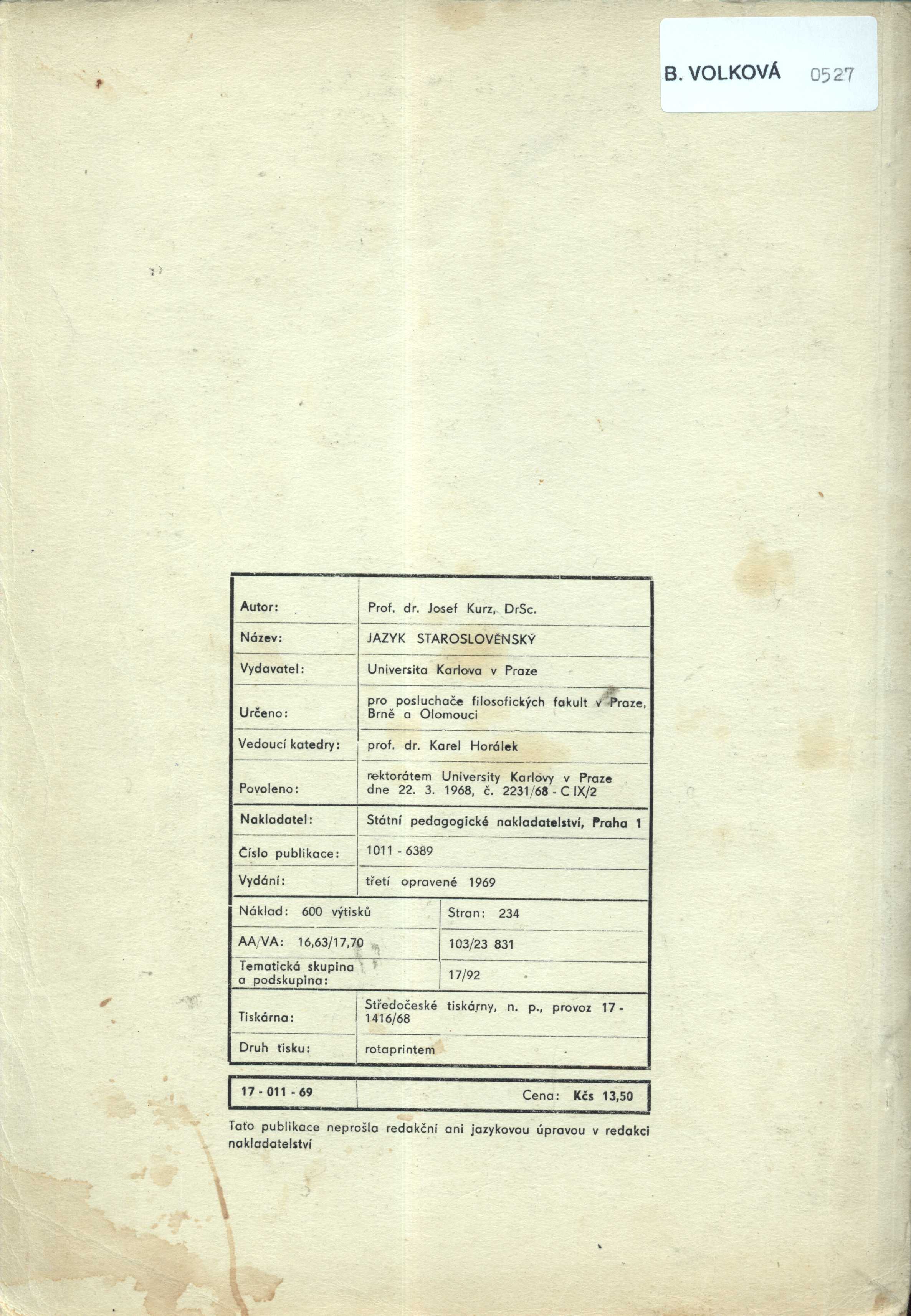1. Title informationJazyk staroslověnský / Josef Kurz