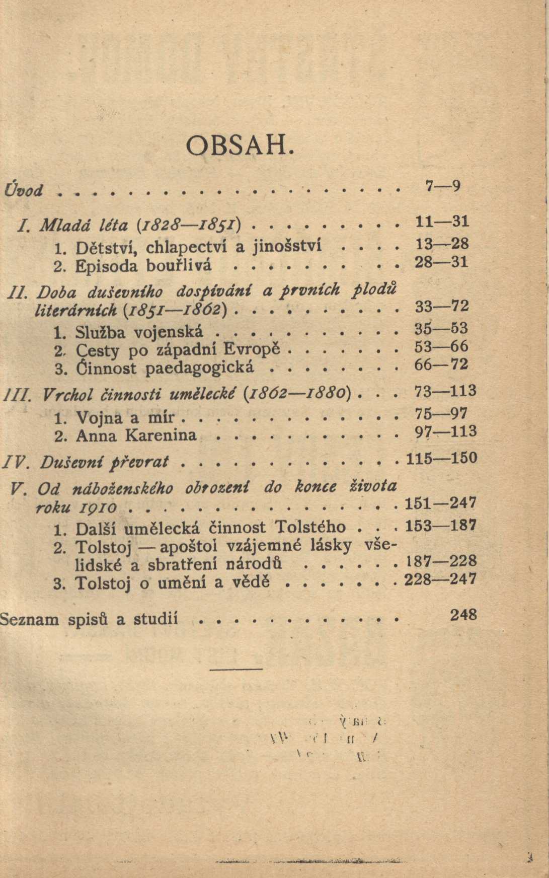 Title information Lev Nikolajevič Tolstoj : život a spisy / napsal J. Máchal Personal name Máchal, Jan, 1864-1924 (Author) Další autoři Patočka, Jan, 1907-1977 (Dedicatee) Corporation F. Šimáček (nakladatelství, tiskárna) (Publisher) E. Leschinger (knihtiskař, nakladatel) (Printer) Publication V Praze : F. Šimáček, 1912 Manufacture Tiskem Edvarda Leschingra Scope 248 stran ; 17,5 cm ISBN (Brožováno / Vázáno) Edition Matice lidu. Běh XLVI ; č. 4
