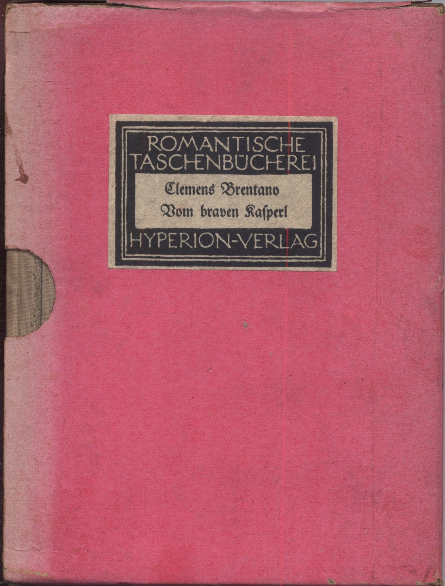 $7 pnp_us_auth*0081856 $a Romantische Taschenbücherei, (Hyperion-Verlag) T85 $x existuji fulltexy UUU $a U sign. Topič osobní knihovna Topiče a Milady Blekastad. UUU $a U sign. Topič 0925 (vázaný výtisk) původní růžové ochranné pouzdro z tužšího papíru s nalepeným štítkem, na něm uvedena edice a odlišně název. - Celoplátěná vazba s kolorovanou ilustrací na přední desce, v ozdobných rámcích, text na hřbetu, žlutá horní ořízka. - Na předním přídeští nalepeno ex libris. - Nakladatelská značka. - Titulní list s kolorovanou ilustrací. - Text německy, gotikou. - Vstupní kolorovaná, ilustrovaná iniciála (J. Fischer). - Převážně ilustrace v textu, kolorované (J. Fischer). - Tiráž. - Zadní strana vazby se zdobným rámcem. UUU $a U sign. Topič 0925 ex libris: "Exlibris BU Blekastad" UUU $a U sign. Topič 0925 nesignovaný, ale kolorovaný výtisk; ochranné pouzdro mírně vyšisované, místy narušené; vazba mírně zašpiněná, jinak zachováno. UUU $a Rozsah: 76, [4] s. UUU $a Rozměr knihy: 15,4 cm; rozměr pouzdra: 16 cm UUU $a Kniha vyšla poprvé r. 1817.