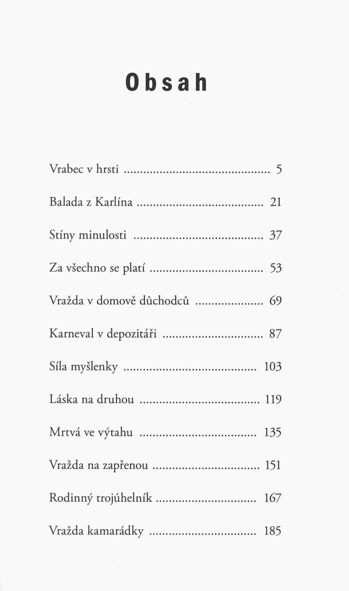 Annotation Dvacet kriminálních povídek nás zavádí do nejrůznějších prostředí a odhaluje různé podoby lidských vztahů, vášně a touhy, které doutnají pod povrchem a nakonec vedou ke zločinu, jehož motivy bývají někdy velmi podivné a občas i naprosto malicherné. Žádný zločin ale není pro pachatele bez rizika, i když počítá s tím, že za sebou zametl všechny stopy. K odhalení pak stačí drobná chybička nebo prostě jen náhoda. Nové detektivní povídky známé české autorky jsou drobnými sondami do oblasti mezilidských vztahů, jejichž vypjaté polohy vedou mnohdy až ke spáchání trestného činu. Document kind monografie Keywords česká próza * detektivní povídky UDC 821.162.3-3 * 82-32 * 82-3 * 821.162.3 Uživatelské pole PNP Vydalo nakladatelství Motto ve společnosti Albatros Media a. s. Call number Track No. Location Info C12b 17174 2596/2016 Sbírka