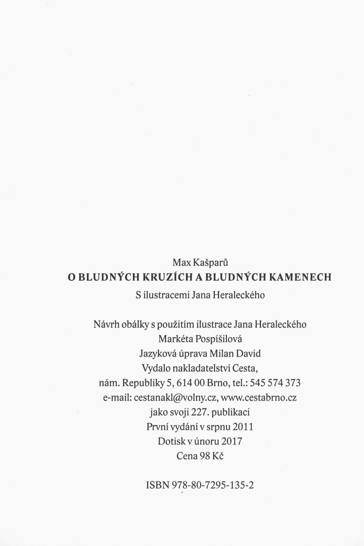 $a O bludných kruzích a bludných kamenech / $c Max Kašparů ; ilustrace Jan Heralecký 250 $a 1. vydání v srpnu 2011 / $b dotisk v únoru 2017 264 -1