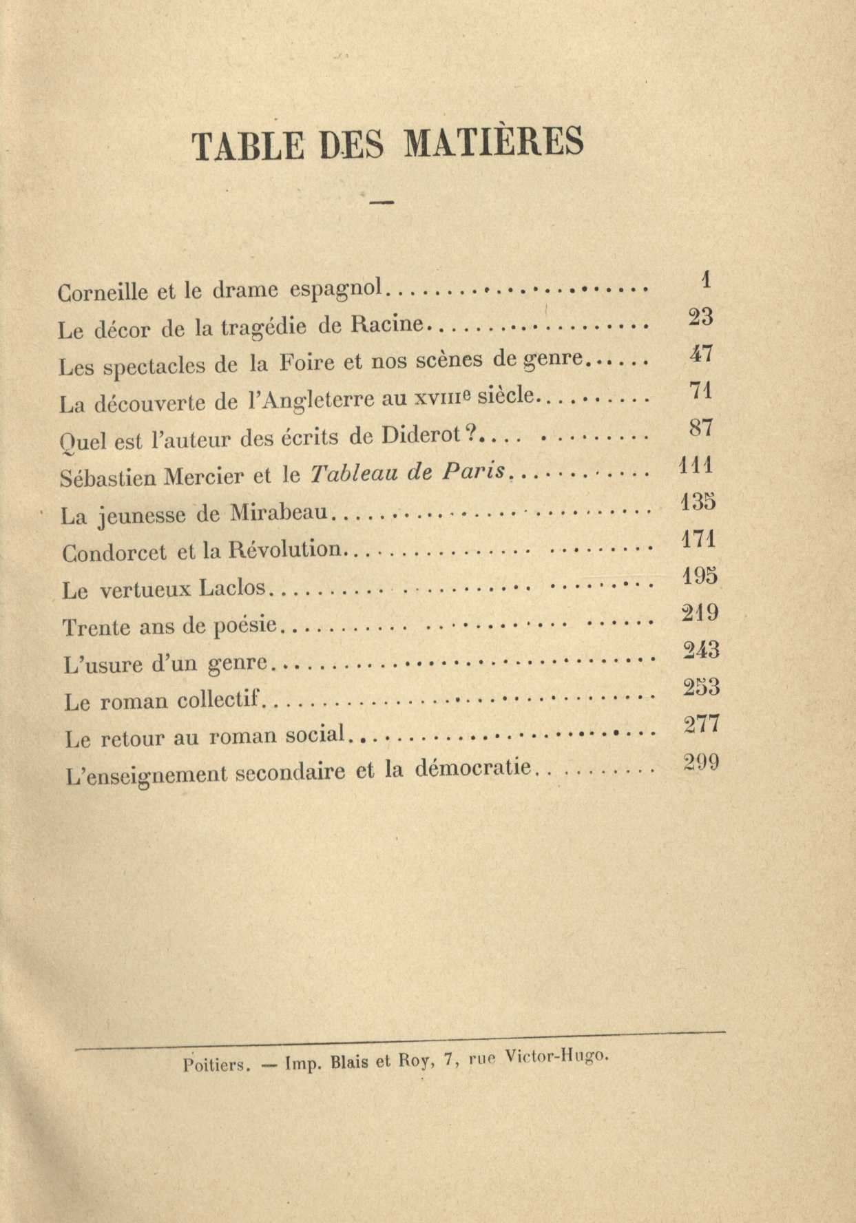 Title information Études sur la Littérature française : cinquième série / René Doumic Personal name Doumic, René, 1860-1937 (Author) Další autoři Librairie Académique Perrin et Cie (Paris, Francie) (Publisher) Blais et Roy (Poitiers, Francie) (Printer) Publication Paris : Librairie Académique Didier Perrin et Cie, 1906 Manufacture Poitiers : Imp. Blais et Roy Scope 321 stran ; 18,5 cm ISBN (Vázáno) Country France Language French Note Modrá plátěná Vazba se zlatým tiskem na hřbetě. - Přehled vydaných knih autora.