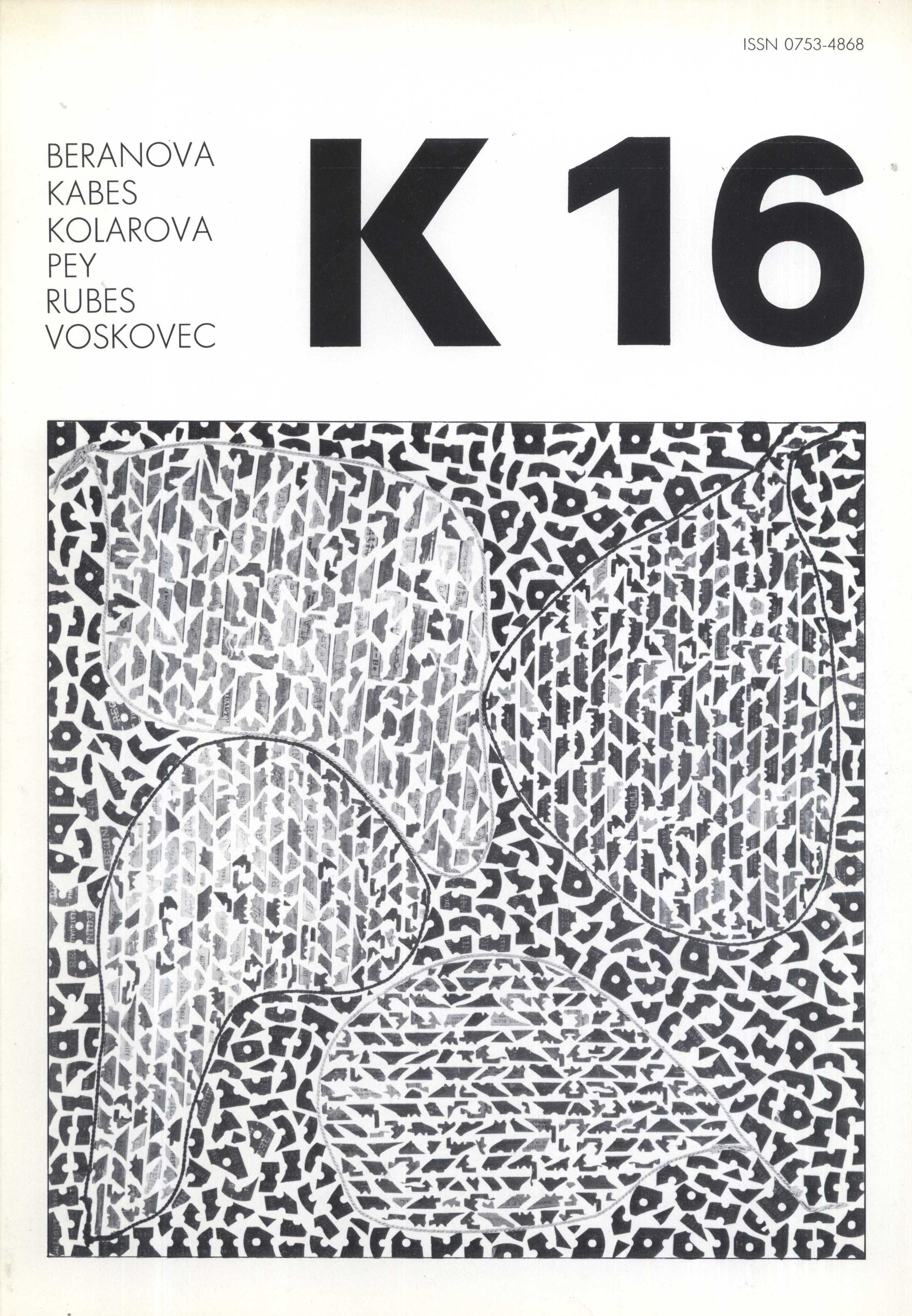 Title information Revue K Další autoři Kolář, Jiří, 1914-2002 (Publishing director) Corporation Revue K (Publisher) Roč., číslo 14-16 + 1 příloha, 1984 Publication Paříž : Revue K, 1984 Scope ilustrace ; 30 cm ISSN 0753-4868 Country France Language French * Czech Note Čb. ilustrace. - Text částečně česky