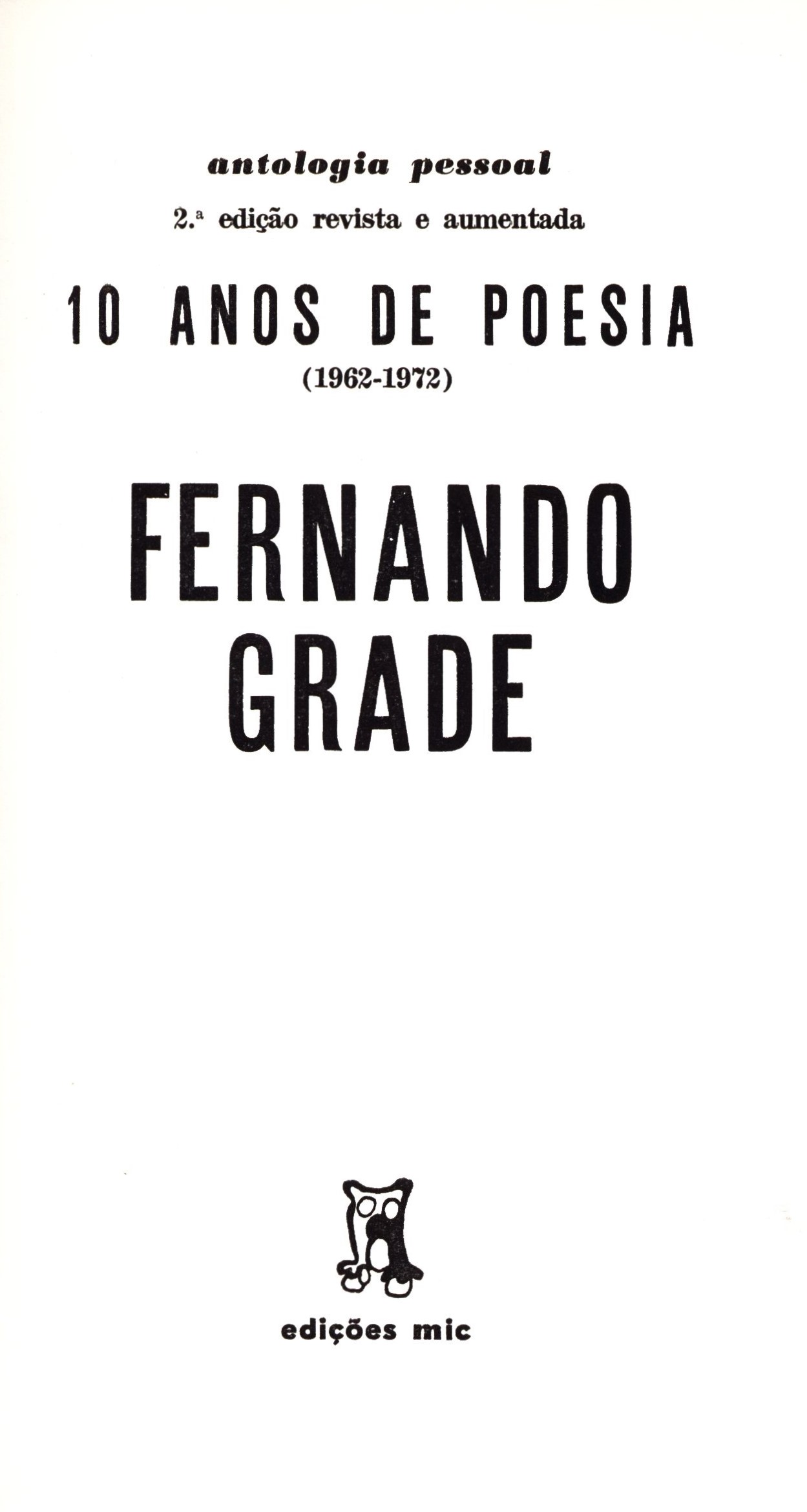 1. Title information10 anos de poesia (1962-1972) : antologia / Fernando Grade