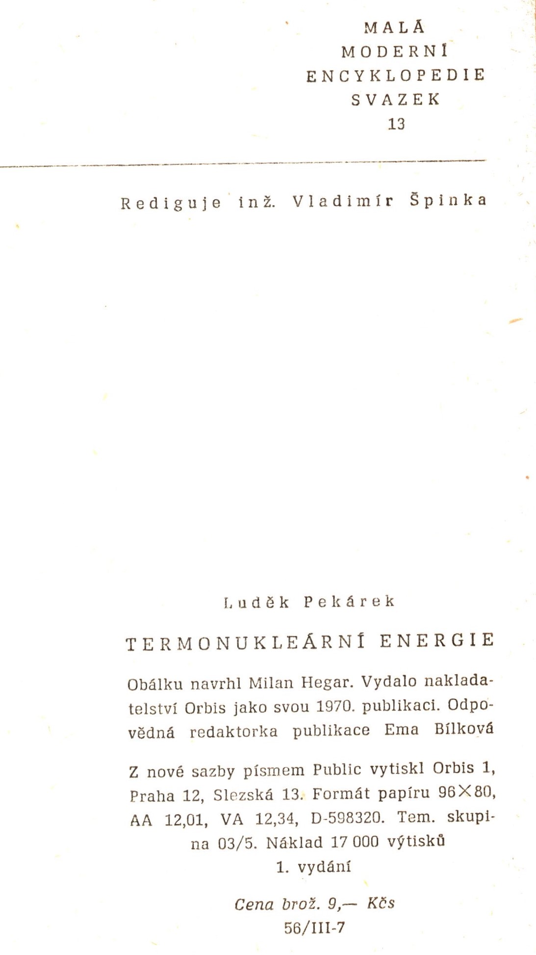 1. Title informationTermonukleární energie / Luděk Pekárek ; obálku navrhl Milan Hegar