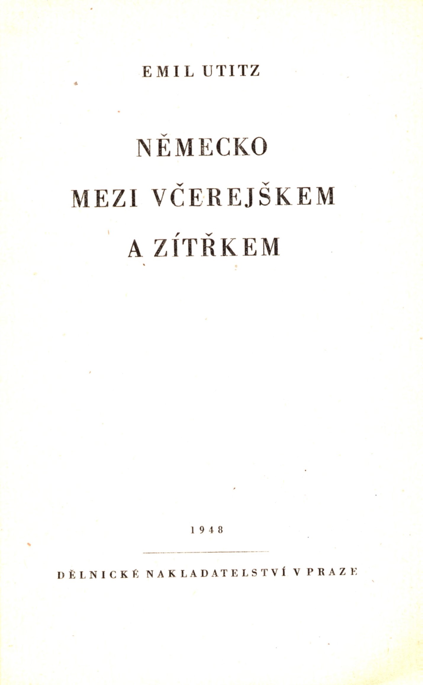 $a Německo mezi včerejškem a zítřkem / $c Emil Utitz ; s obálkou L. Sváška 250 $a I. vydání 264 -1
