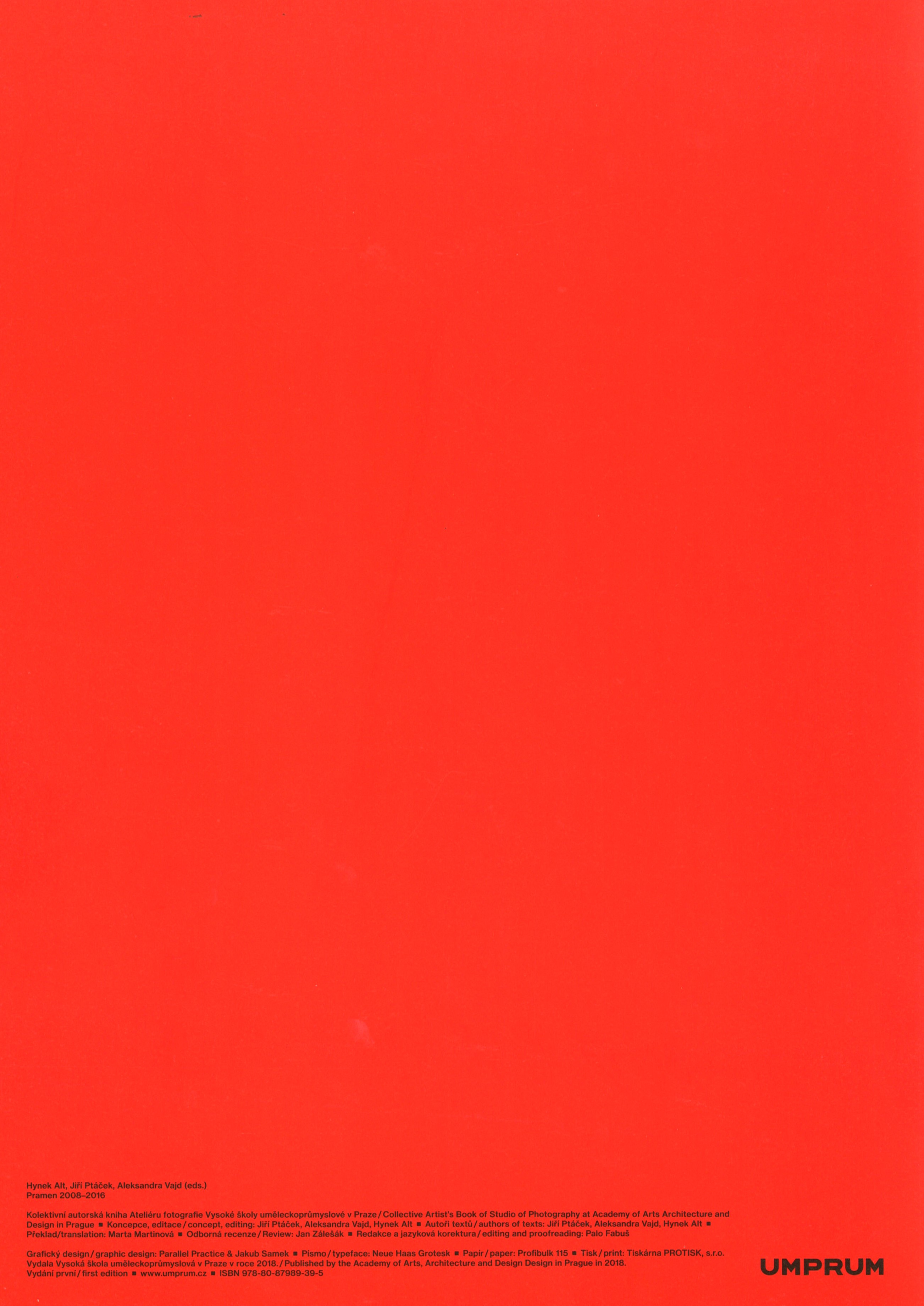 Title information Pramen 2008-2016 : kolektivní autorská kniha Ateliéru fotografie Vysoké školy uměleckoprůmyslové v Praze = Pramen : School of Fotography 2008-2016 / koncepce, editace Jiří Ptáček, Aleksandra Vajd, Hynek Alt ; texty Jiří Ptáček, Aleksandra Vajd, Hynek Alt ; překlad Marta Martinová ; grafický design Parallel Practice & Jakub Samek Personal name Ptáček, Jiří, 1975- (Author) (Conceptor) (Editor) Další autoři Vajd, Aleksandra, 1971- (Author) (Conceptor) (Editor) Alt, Hynek, 1976- (Author) (Conceptor) (Editor) Martinová, Marta, (Translator) 1981- Samek, Jakub, 1988- (Book designer) Corporation Vysoká škola uměleckoprůmyslová (Praha, Česko) (Publisher) Protisk (tiskárna, České Budějovice) (Printer) Publication V Praze : Vysoká škola uměleckoprůmyslová, 2018 Manufacture [České Budějovice] : Tiskárna Protisk, s.r.o. Scope 221 stran : ilustrace (převážně barevné) ; 32 cm ISBN 978-80-87989-39-5 (brožováno) Country Czech Republic Language Czech * English Language of the original Czech Note Bílá obálka s barevnými ilustracemi a černobílými fotografiemi (pokračuje na záložkách i zadní straně), červený text; barevný text na hřbetu. - Červený list (údaje tiráže, ISBN). - Červený dvoulist (český a anglický úvodní text a poděkování editorů). - Černobílé a barevné fotografie na různobarevných listech (některé s popisky).