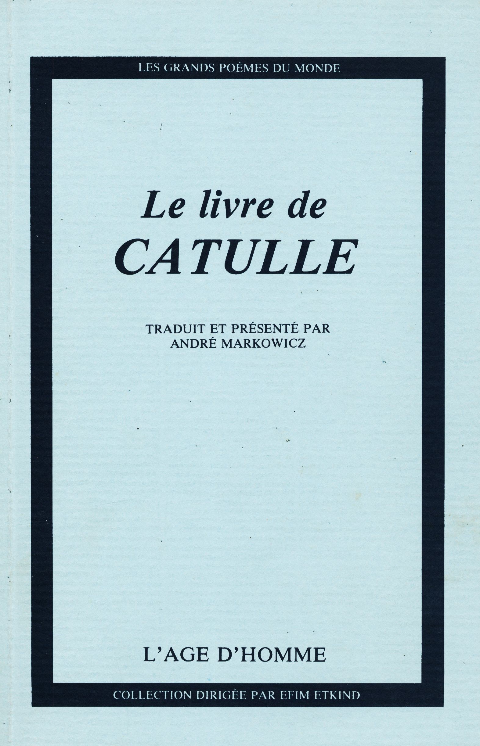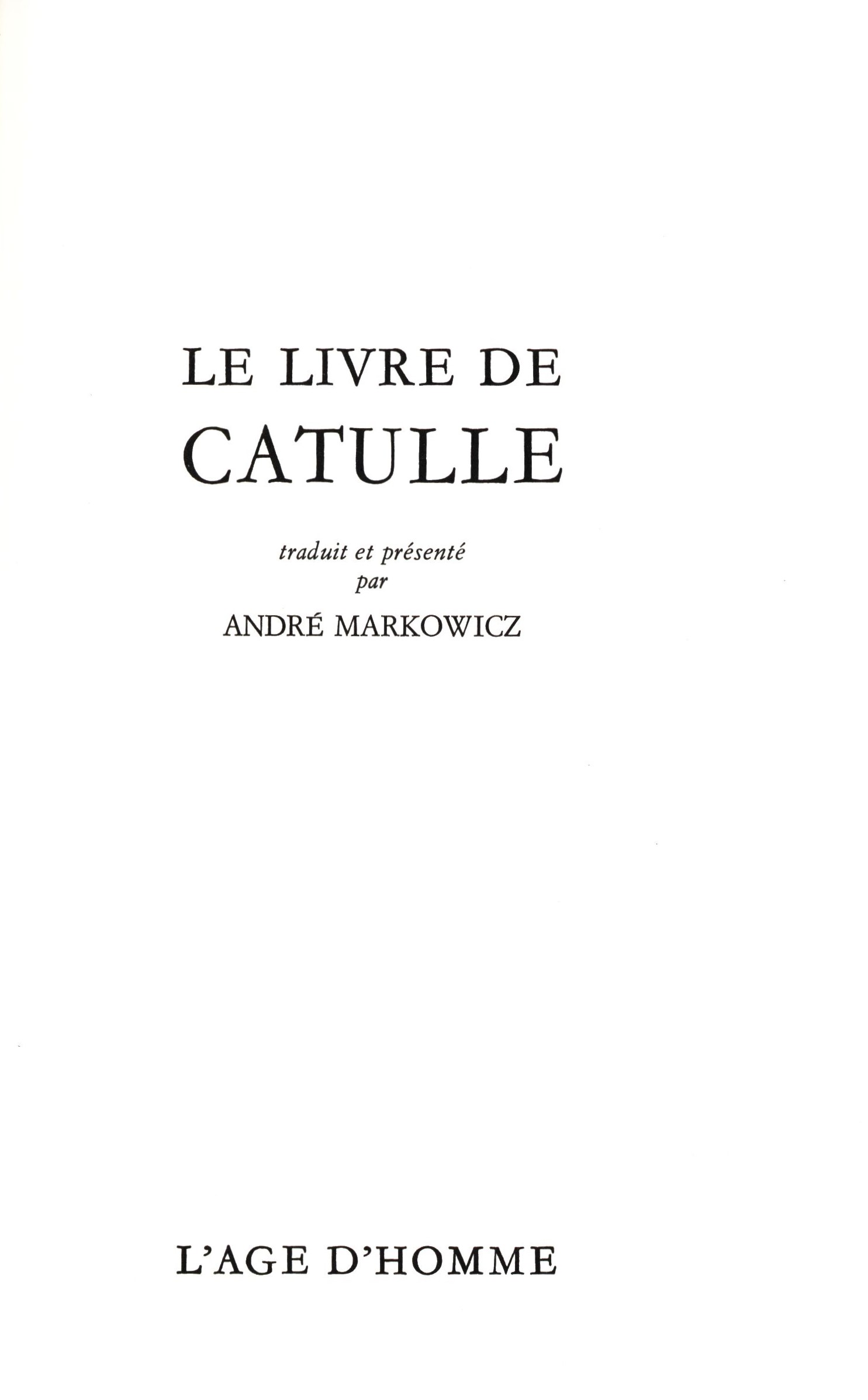 Title information Le livre de Catulle / traduit et présenté par André Markowicz Personal name Markowicz, André, 1961- (Translator) (Dedicator) (Editor) Další autoři Vladislav, Jan, 1923-2009 (Dedicatee) Corporation Éditions L’Âge d’homme (Publisher) Publication Lausanne : L´Age d´Homme, 1985 Manufacture Vevey : Delfa Scope 111 stran ; 21 cm ISBN (brožováno) Edition Les grand poèmes du monde