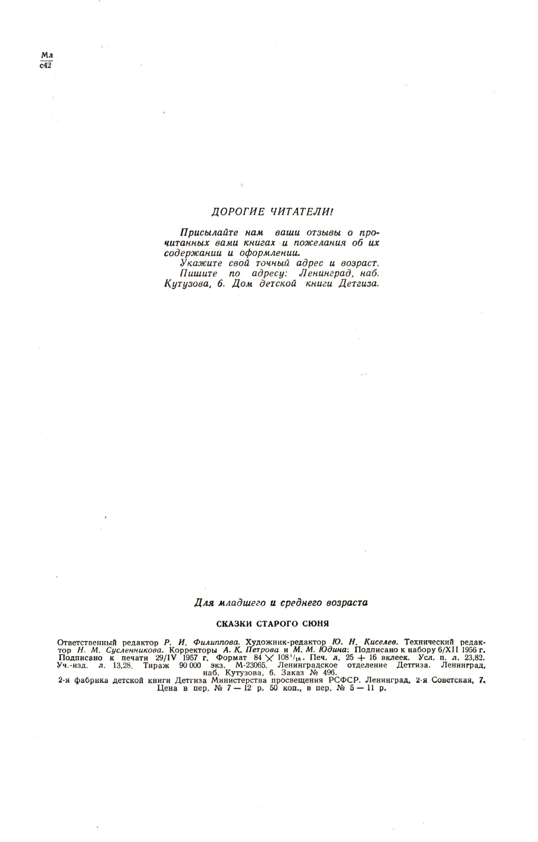 $a Skazki starogo Slunja / $p Obrabotka Z. Zadunajskoj ; Risunki V. Konševiča 264 -1