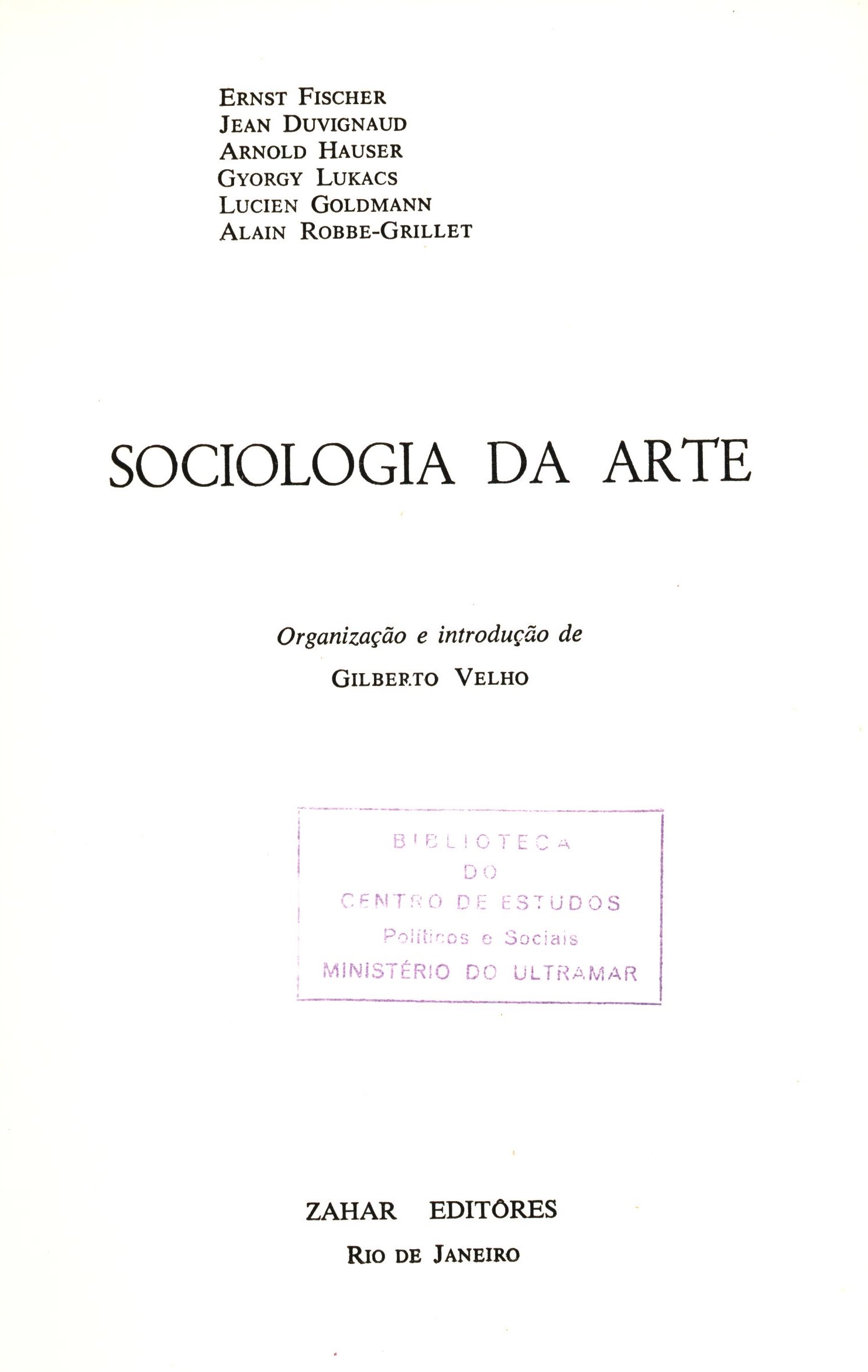 1. Title informationSociologia da arte Organização e introdução de Gilberto Velho